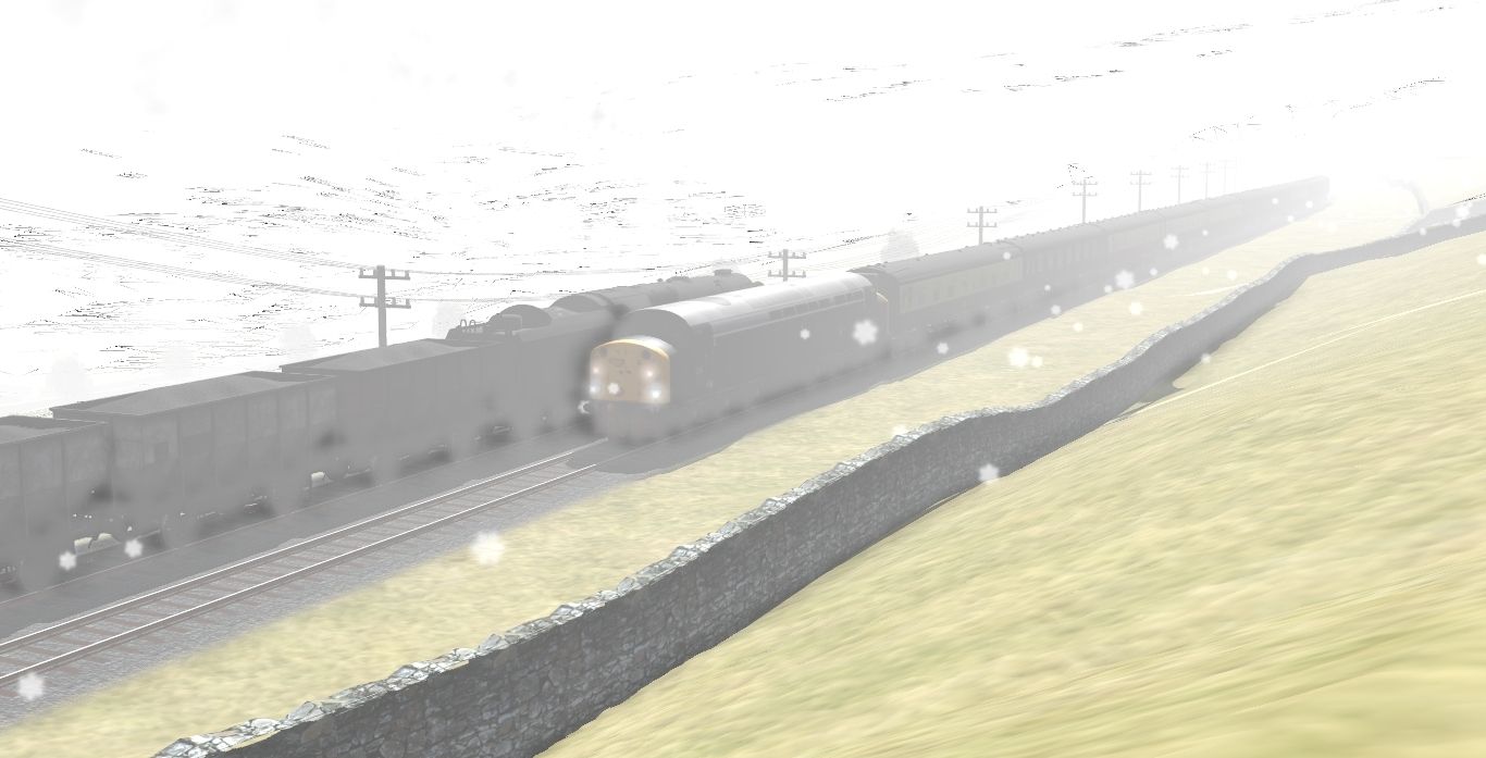 Tags: Trainz Railroad Simulator 2022, Hawes Junction, Vintage Scenes - Early December 1966, BR Class 40 40122 green, BR 9f Double Chimney, BR 24.5T CoalHop Diag 155 HUO, BR 9f tender BR1F Late Logo, BR 24.5T CoalHop Diag 148 HUO, BR Mk1 FO Brown, BR Mk1 FK Green, BR 27T Iron Ore Tippler - Standard #1, BR Mk1 FK Carmine, BR 27T Iron Ore Tippler - Standard #2, BR Mk1 CK Brown