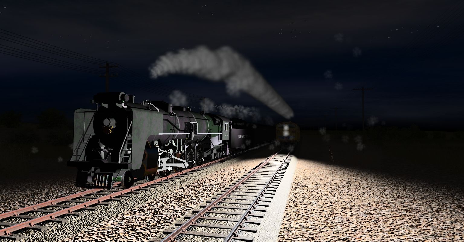 Tags: Trainz: A New Era, Sherman Hill vers 3.1, NYC Mohawk #3124 LOD, UP F3A #1401, UP F3B, Tender_NYC_Mohawk_LOD, NYC Pullman Baggag car, NYC Pullman coach
