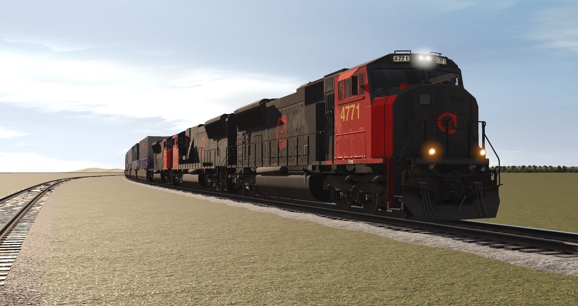 Posted by: jyar8882001 | Posted:2024-11-30 22:07:15 Caption: Tags: Trainz Railroad Simulator 2022, My nice time, Default, Red River Railway SD70MAC FR, BNSF 53 Maxi-IV B (weathered)
