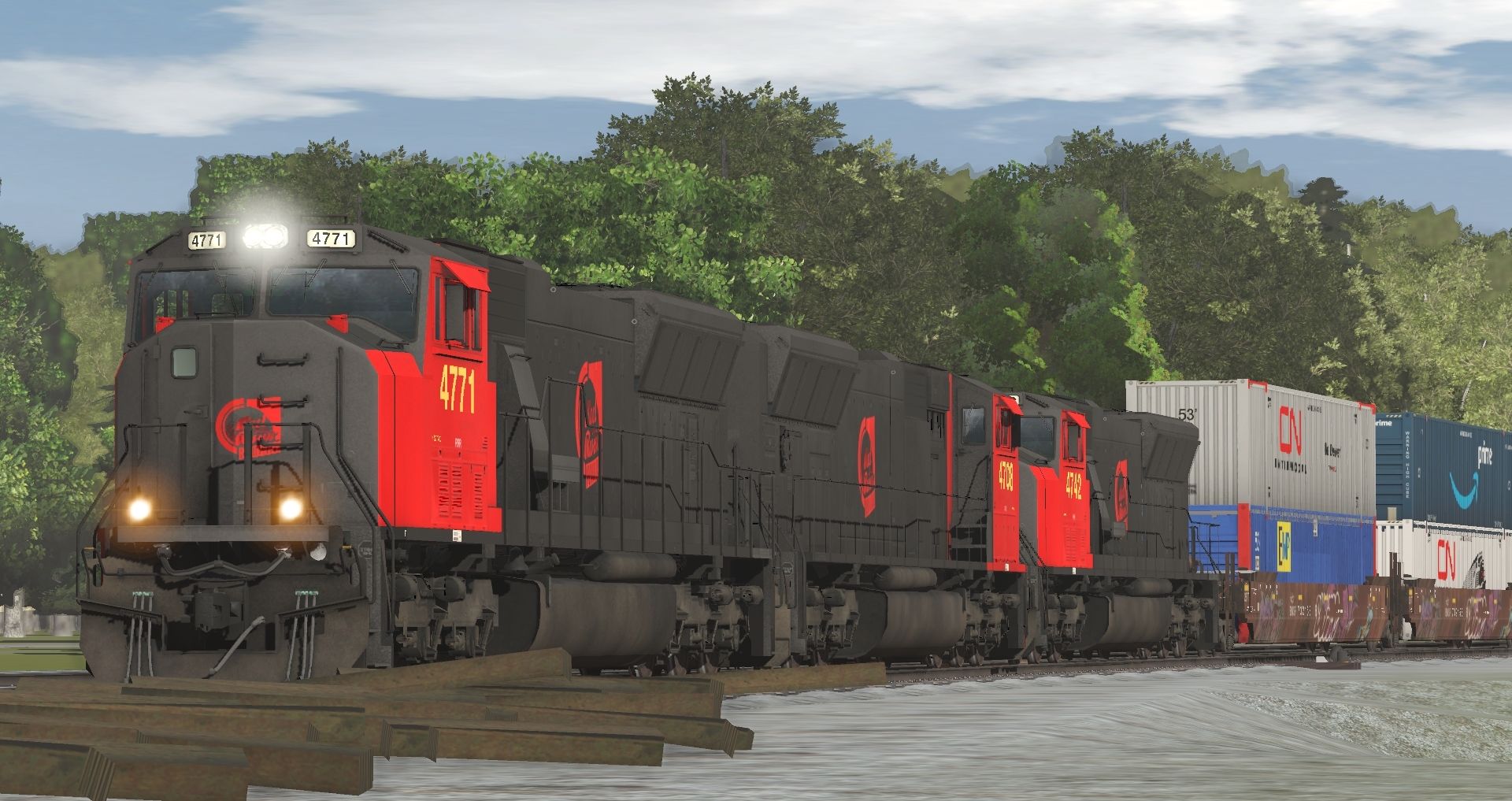 Tags: Trainz Railroad Simulator 2022, My nice time, Default, Flying Cam PBR, Red River Railway SD70MAC FR, BNSF 53 Maxi-IV B (weathered)