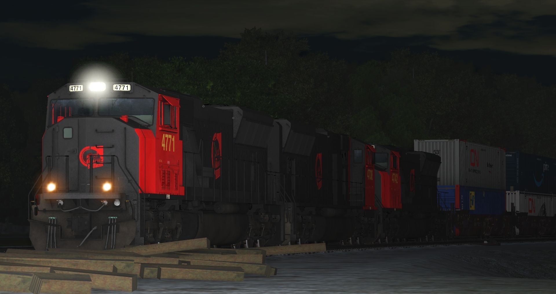 Tags: Trainz Railroad Simulator 2022, My nice time, Default, Flying Cam PBR, Red River Railway SD70MAC FR, BNSF 53 Maxi-IV B (weathered)