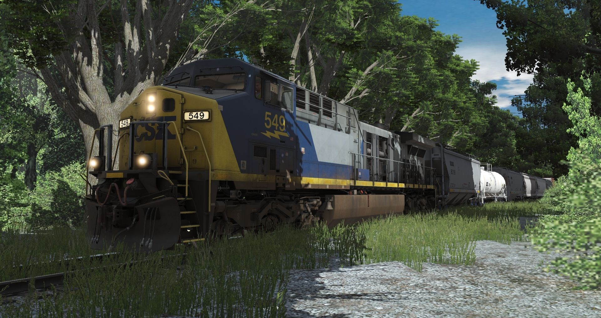 Tags: Trainz Railroad Simulator 2022, My nice time, Default, CSX AC4400CW YN2 547-556 2, KCSM Belle AC4400CW 4550-4574 TS19 1, SOXX 4250 3 bay, WFRX 23000 gal Funnel-Flow tank car white, WFRX 3 bay, NOKL ACF Centerflow 4 Bay round hatch, NOKL #815305 3 Bay ACF, NOKL 3 bay, NKCR 50ft High Cube Boxcar, NJR AOK 181056, SHPX 2 Bay Hopper ACF 2971