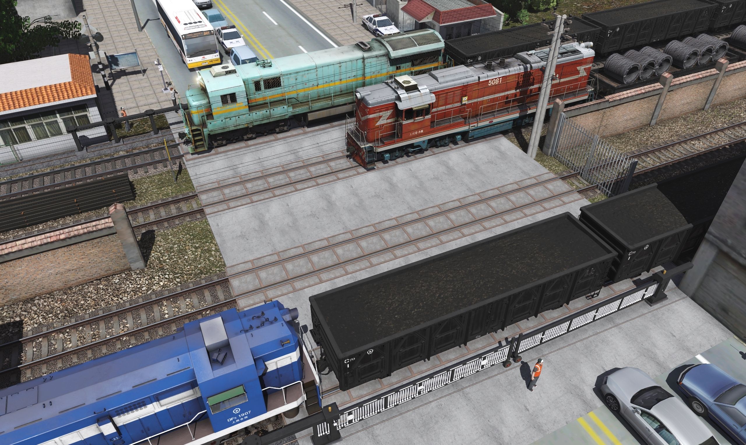 Tags: Trainz Railroad Simulator 2022 模拟火车 2022, 淮南路-合肥绕行线BK1117, 默认, DF5型内燃机车1907上局合段, 东风7C型可自定义版, 内电5型内燃机车Classic, ND5型摄像用内燃机车[基于GE C36-7], ND5型内燃机车[基于GE C36-7], CHN C70 Gondola, CHN N17G Flatbed Wagon Black