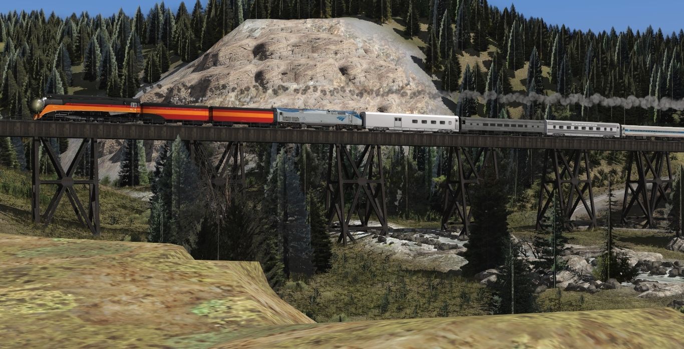Tags: Trainz Railroad Simulator 2022, BN Oasis V3, SP #4449: 2006 Deschutes Daylight (V2), OF SP GS-4 Modern Daylight v1, AMTK P42DC ph V, OF SP GS-4 Modern Daylight Tender, OF SP GS-4 Daylight Auxillary Tender, Budd Streamlined Combine Undec, Silver Coach, ATSF SS Chair Car, Amtrak Horizon Coach Ph IVb BT14, Amtrak Horizon Dinette Ph IVb 58000-58007, AT&SF baggage, PRR Sl-Buf-Lo Colonial Crafts
