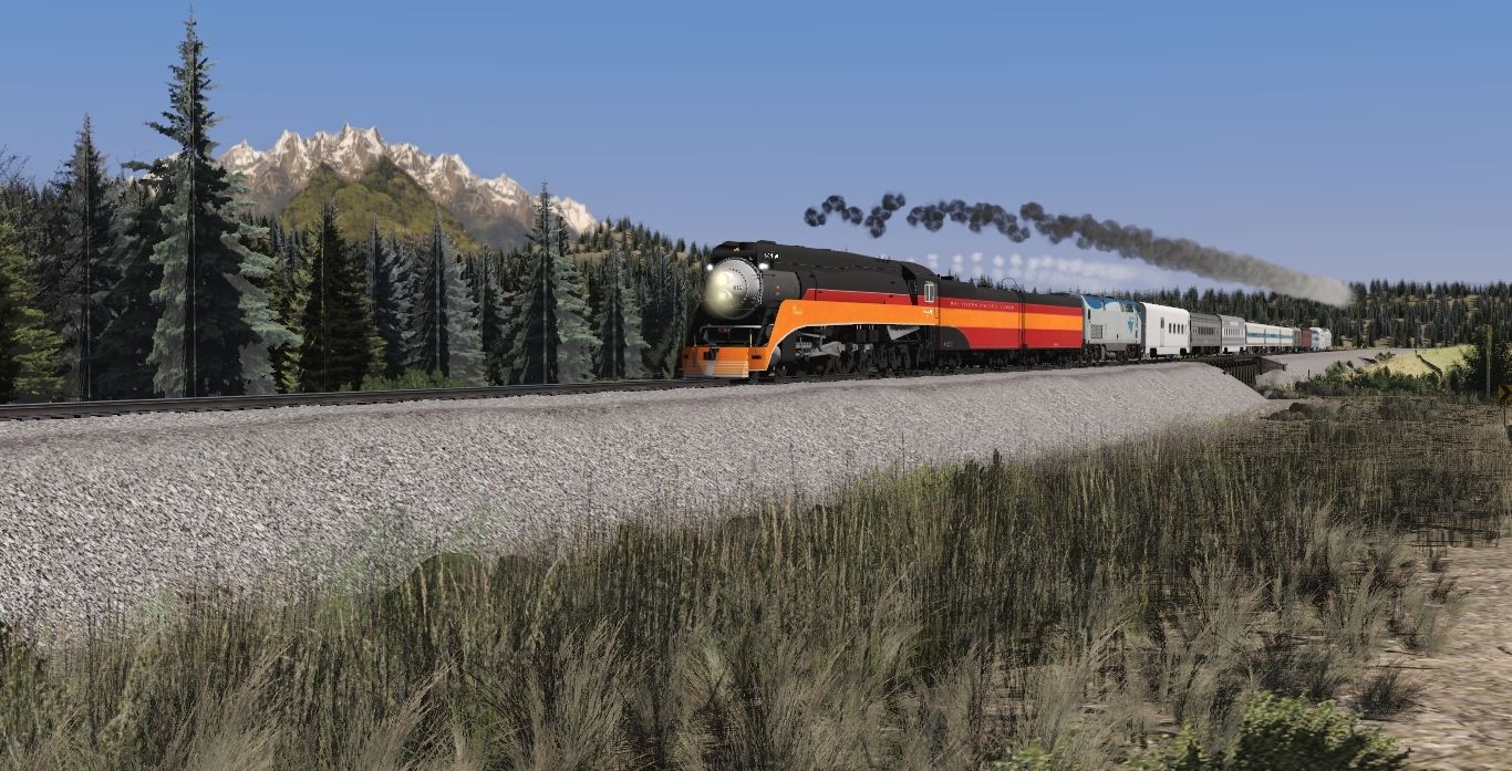 Tags: Trainz Railroad Simulator 2022, BN Oasis V3, SP #4449: 2006 Deschutes Daylight (V2), OF SP GS-4 Modern Daylight v1, AMTK P42DC ph V, OF SP GS-4 Modern Daylight Tender, OF SP GS-4 Daylight Auxillary Tender, Budd Streamlined Combine Undec, Silver Coach, ATSF SS Chair Car, Amtrak Horizon Coach Ph IVb BT14, Amtrak Horizon Dinette Ph IVb 58000-58007, AT&SF baggage, PRR Sl-Buf-Lo Colonial Crafts