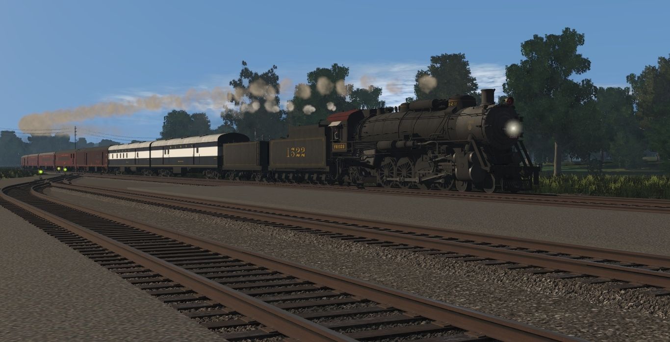 Tags: Trainz Railroad Simulator 2022, Generic Eastern Route - TRS 19, SLSF 1522: 1994 Peach Blossom Special, Frisco 1522 Engine, NS SW1500, NS GP38-2 HH ex SOU Early, Frisco 1522 Tender, Frisco 1522 Aux Tender, Frisco 1522 01 Tool Car Black Gold, Frisco 1522 02 Dorm Car Fire Fly, JRPX Tool Car, WMSR Coach 726 Man O War, CPAA 60' ACF Boxcar SD, N&W NS Powhatan Arrow 01 P1 Locker Car 502