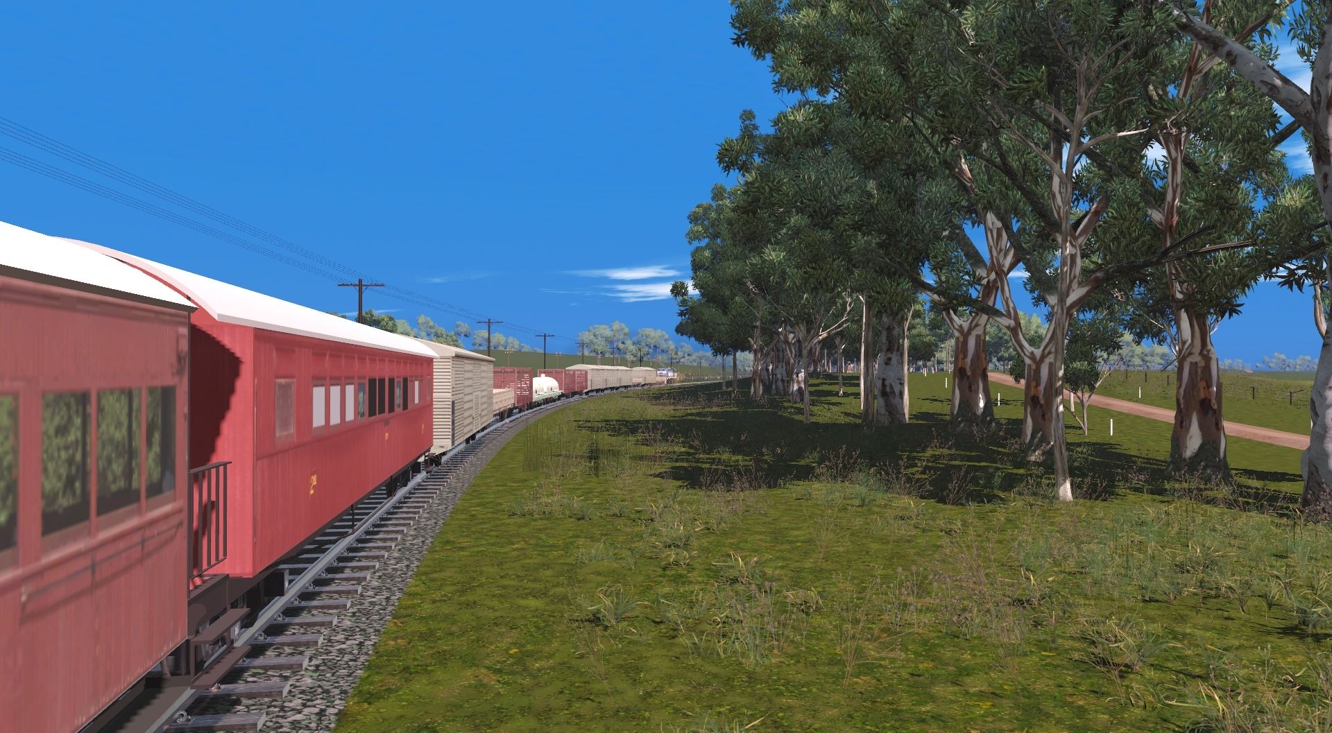 Tags: Trainz Railroad Simulator 2022, Queensland, Default, QR 1700 class 60+, QR BLV1401MG, QR BO275MG, QR NG WW Watertank Wagon, QR KA cattle wagon NG, QR QLX, QR HJS Wagon