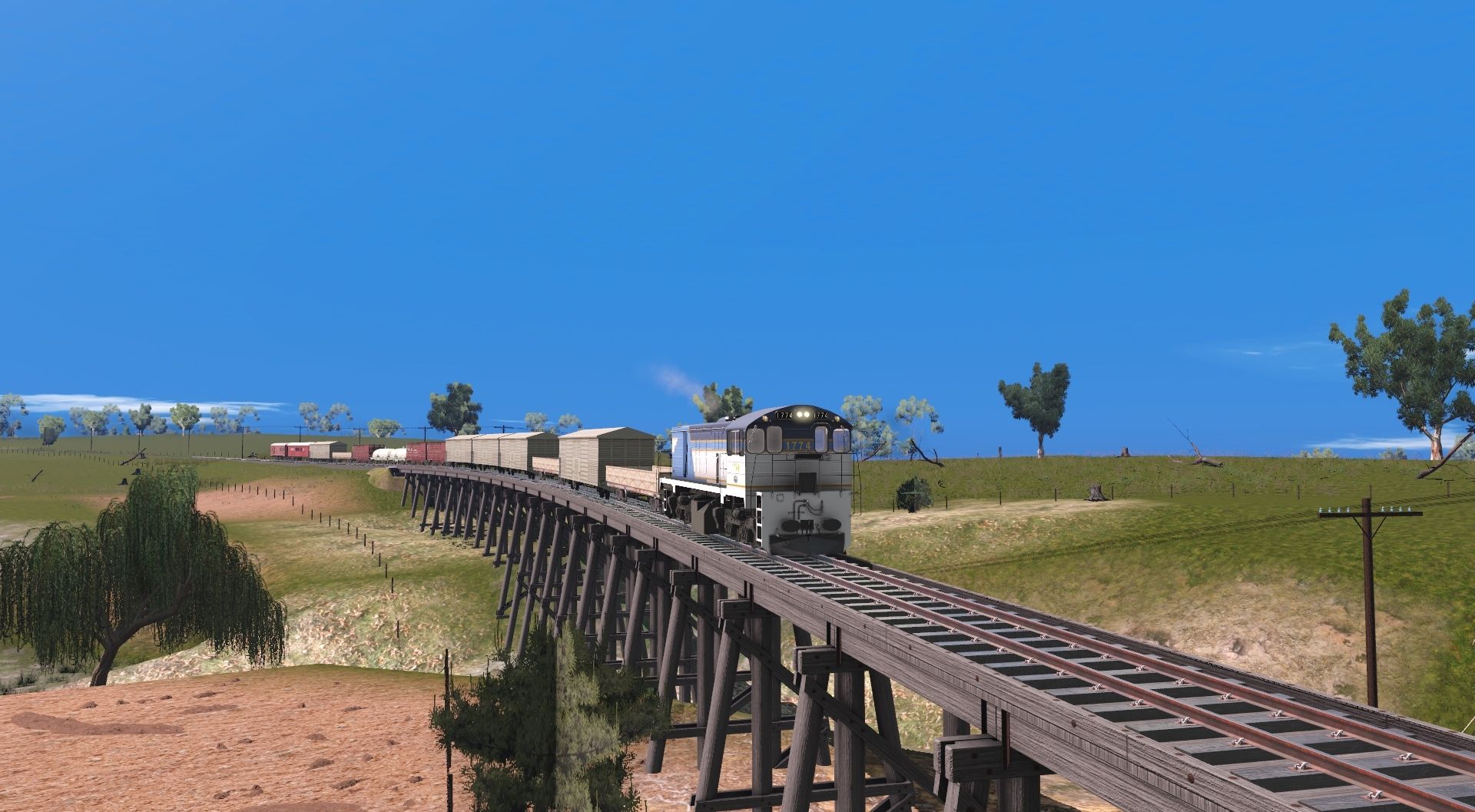 Tags: Trainz Railroad Simulator 2022, Queensland, Default, QR 1700 class 60+, QR HJS Wagon, QR QLX, QR KA cattle wagon NG, QR NG WW Watertank Wagon, QR BO275MG, QR BLV1401MG