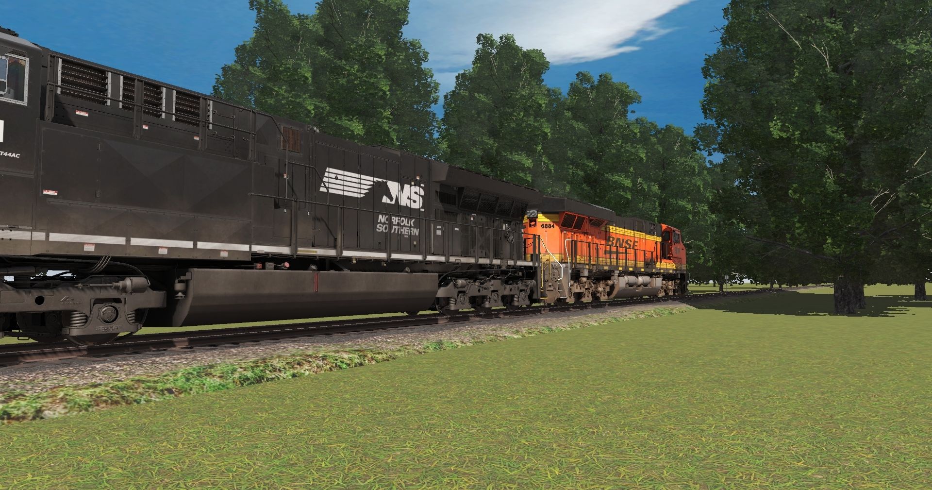 Tags: Trainz Railroad Simulator 2022, REAA, Default, NS ET44AC, BNSF ES44DC Late, 53ft BNSF H2 Wellcar (Single), 53ft BNSF H2 Wellcar Weathered (Single), BNSF 53 Maxi-IV C (weathered), BNSF 53 Maxi-IV B (weathered), BNSF 53 Maxi-IV A (weathered)