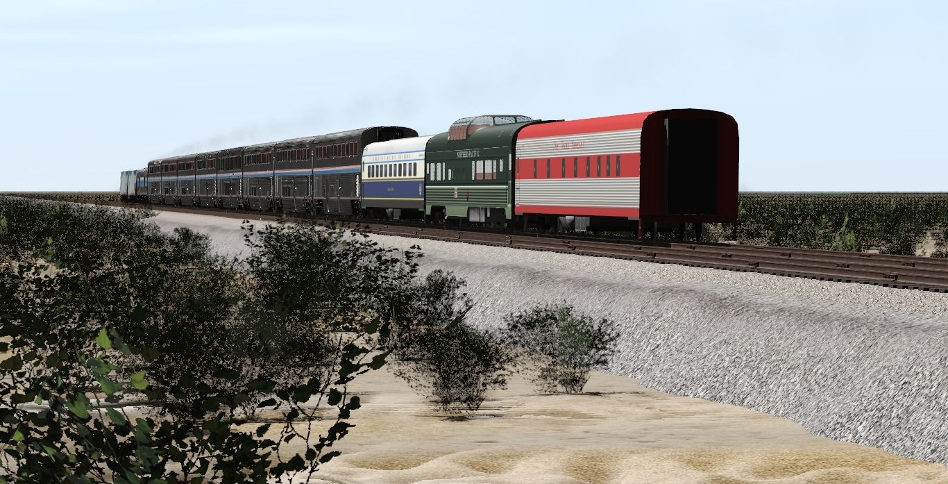Tags: Trainz Railroad Simulator 2022, Generic Desert Route, BNSF Scenes - Early August 2013, A_Camera_00, AMTK P42DC ph V, BTVFD MKT Texas Special Coach, NP Budd Dome Buffet, AOE 800668 Crew Sleeper 'Grand Canyon, Amtrak Superliner I Coach Baggage, Amtrak Superliner II Coach, Amtrak Superliner II Lounge, Amtrak Superliner II Diner, Amtrak Superliner II Sleeper, Amtrak Superliner II Transition Sleeper
