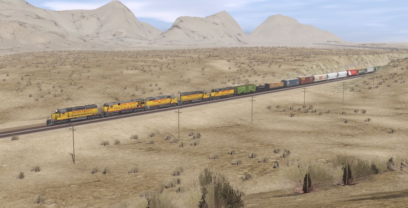 Tags: Trainz Railroad Simulator 2022, LASL Colinas Basin (Modern), UP Scenes - Early July 1993, UP C30-7 later paint, UP GP38-2 2000-2039 hood numbers, UP SD40-2 3002-3973, UP GP40 500-516, Amtrak B32-8WH Phase III 500-519 1, DTI 50' ACF Boxcar 1, 36ft Tank Car Gulf, Bulkhead Flatcar SIECO Illinois Central No Braces DES, Boxcar FMC 5347 50ft MEC DES, Boxcar 50 ft FMC 5283 cf SSW ver 1 DES, ACF 5170 4bay Cvd Hopper ACFX 2 DES