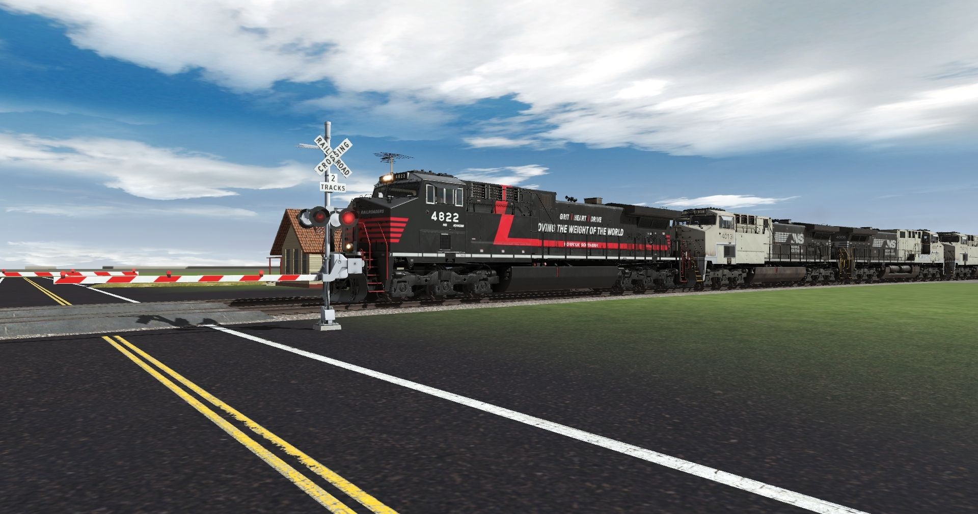 Tags: Trainz Railroad Simulator 2022, My nice time, Default, NS AC44C6M Employee Appreciation, NS AC44C6M Primer early (ex-HH), NS SD70ACU, 52ft Gondola CEFX 1, 52ft Gondola BNSF 3 ex-SOO, 52ft Gondola CSXT 1, 52ft Gondola NOKL 1, 52ft Gondola CSXT 3, 52ft Gondola CSXT 2, 52ft Gondola CEFX 2, 89Ft Autorack UP 3