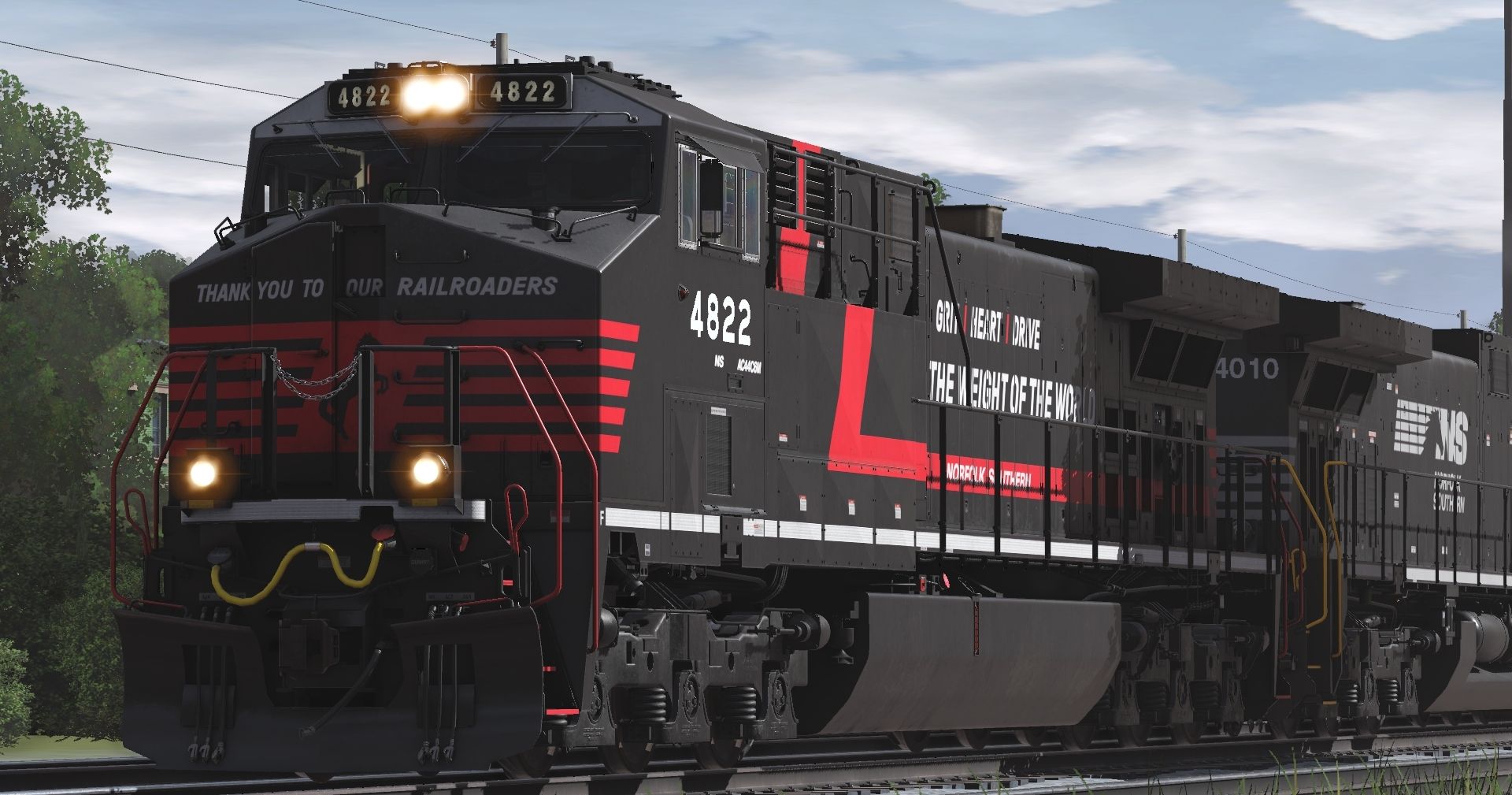 Tags: Trainz Railroad Simulator 2022, Norfolk Southern Opeya District, Default, Flying Cam PBR, NS AC44C6M Employee Appreciation, NS AC44C6M early, BNSF 53 Maxi-IV B (weathered), BNSF 53 Maxi-IV C (weathered), BNSF 53 Maxi-IV A (weathered), 53ft BNSF H2 Wellcar Weathered (Single), 53ft BNSF H2 Wellcar (Single)