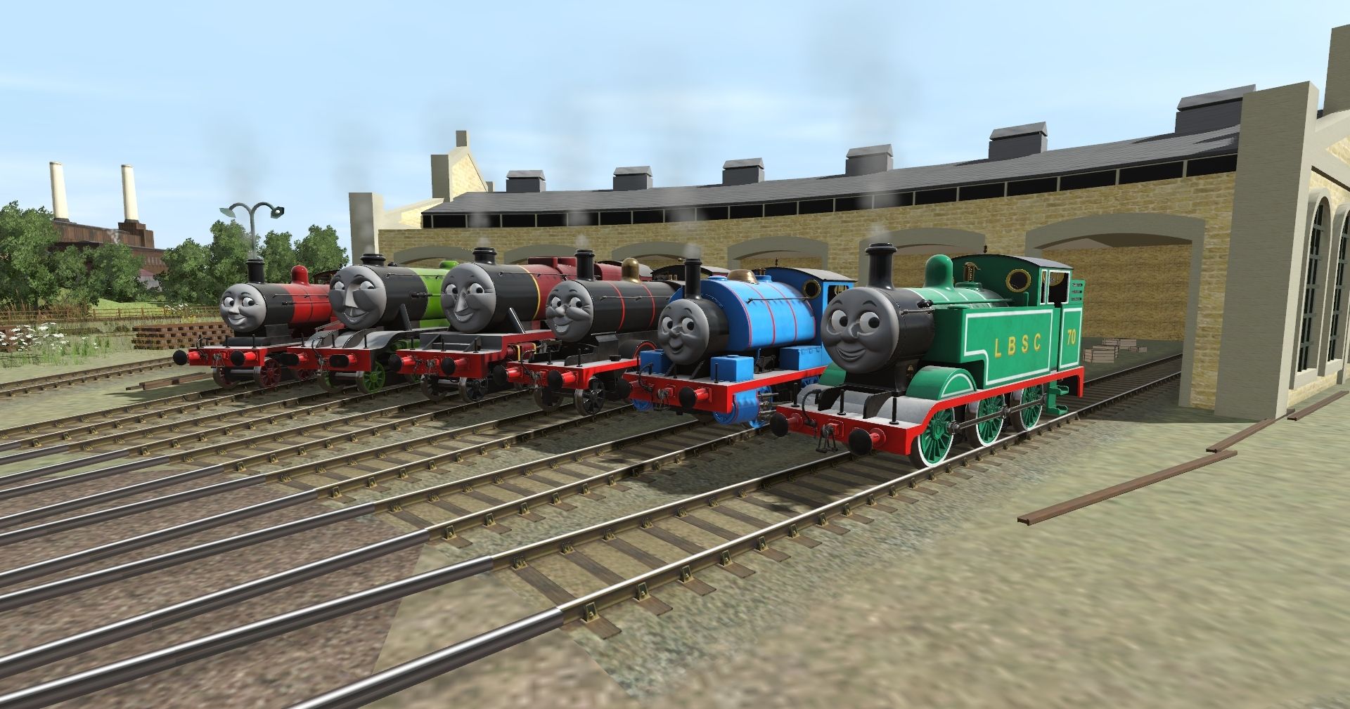 Tags: Trainz Railroad Simulator 2019, Mercy's Sodor, Default, Flying Cam, SRKW - Hybrid Thomas the Tank Engine, SRKW - Hybrid Percy the Small Engine (Saddle Tank), SRKW - Hybrid James the Red Engine, SRKW - Hybrid Henry the Green Engine, SRKW - Hybrid Gordon the Big Engine, SRKW - Hybrid Edward the Blue Engine, SRKW - Hybrid James' Tender - Coloured Ladders, SRKW - Hybrid Henry's Tender (Black 5), SRKW - Hybrid Edward's Tender, SRKW - Hybrid Gordon's Tender
