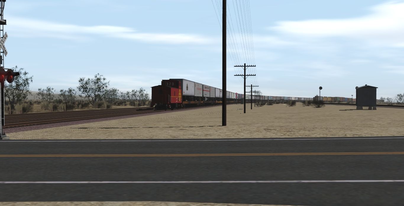 Tags: Trainz Railroad Simulator 2022, Cajon Subdivision - 1990 Part 1: The Pass, 1970's Scenes - Late August 1974, SP C40-4 Caboose- late version ver. 2, ATSF SD45-2 blue/yellow warbonnet, SP SD45, SP SD40 - 2, SP SD40T-2 ph2a M, SP SD40T-2 ph2a R, Invisible Train, ATSF Ce-2, TTX F89F Flat 89 TOFC Trailer Train, TTX F89F Flat 89 TOFC Trailer Train Oxide Red, WP 89ft AP Flatcar Yellow