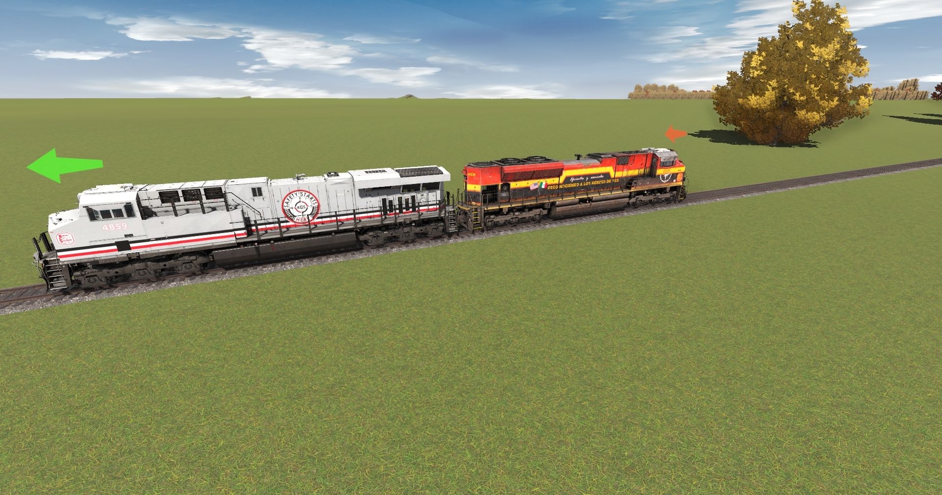 Tags: Trainz Railroad Simulator 2022, REAA, Default, KCS ES44AC Safety Starts Here, KCS SD70ACe NON-ISO 2a Reconociendo a los Héroes de KCS, Flying Cam PBR