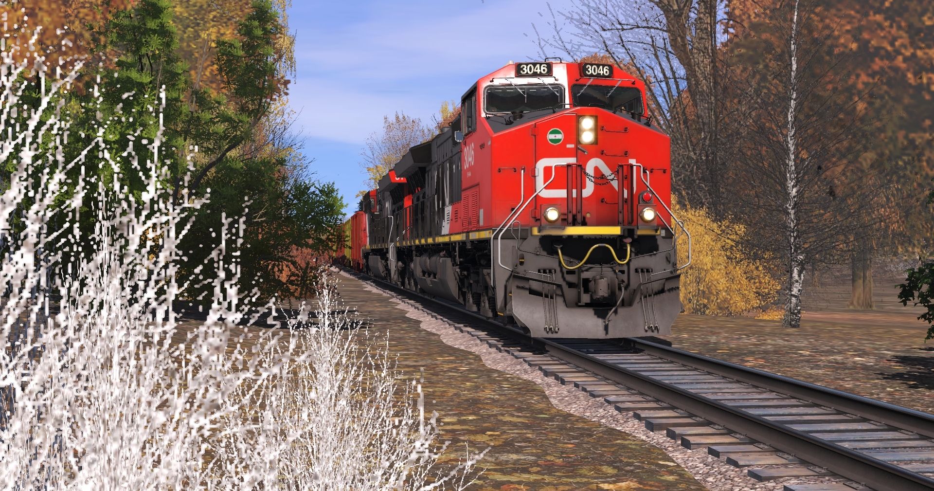 Tags: Trainz Railroad Simulator 2022, Stratton Falls Line, Stratton Falls Line - Default, CN ET44AC, NREX ex-ATSF SD45-2u, SD45-2 FVLC #2024, SD45(SD40M-2) CP #5498, SFRX yellow H1K Hopper, SFRX H1K Hopper, ACRX 60ft HC Boxcar