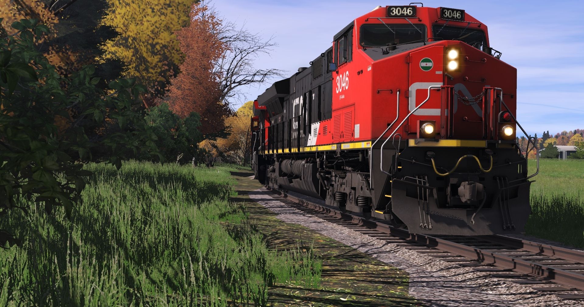 Tags: Trainz Railroad Simulator 2022, Stratton Falls Line, Stratton Falls Line - Default, CN ET44AC, SD45(SD40M-2) CP #5498, SD45-2 FVLC #2024, NREX ex-ATSF SD45-2u, SFRX yellow H1K Hopper, SFRX H1K Hopper, ACRX 60ft HC Boxcar
