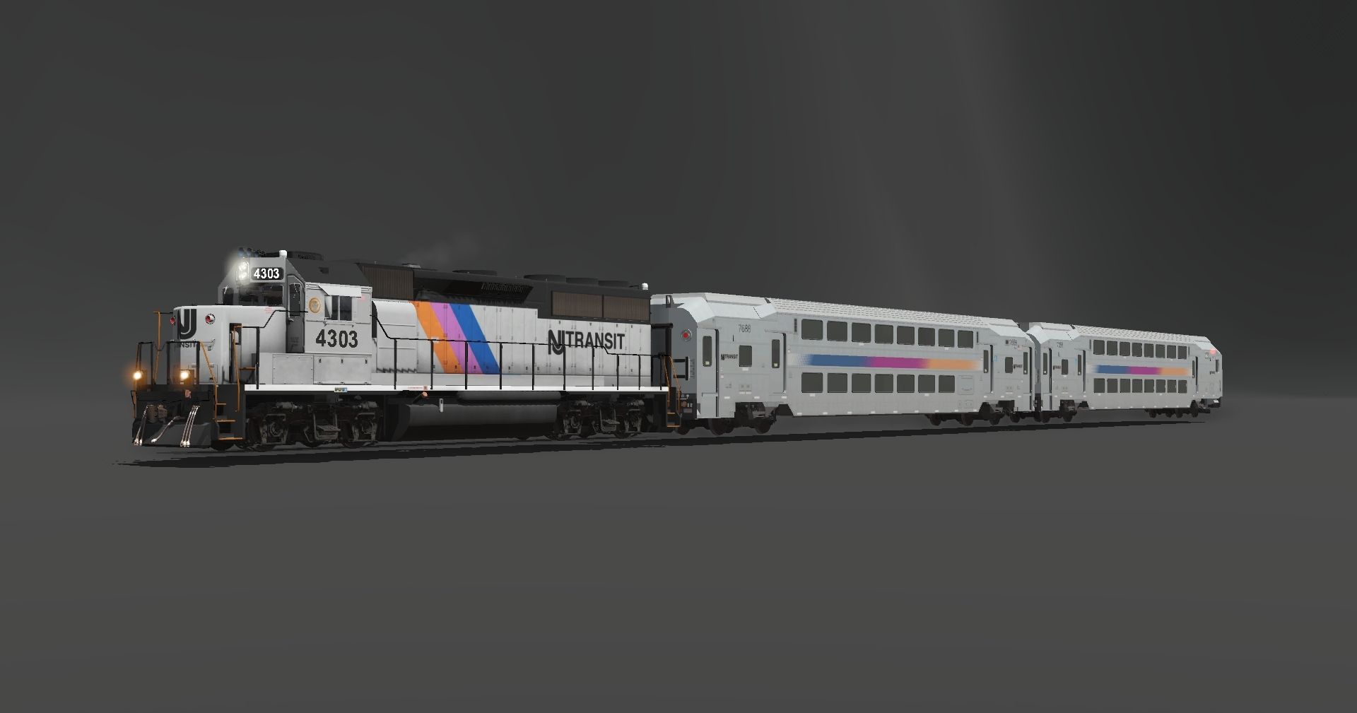 Tags: Trainz Railroad Simulator 2022, Display locos, Default, NJT GP40-2, Flying Cam PBR, NJT Bombardier Multilevel Cab car (BETA), NJT Bombardier Multilevel Trailer car (BETA)