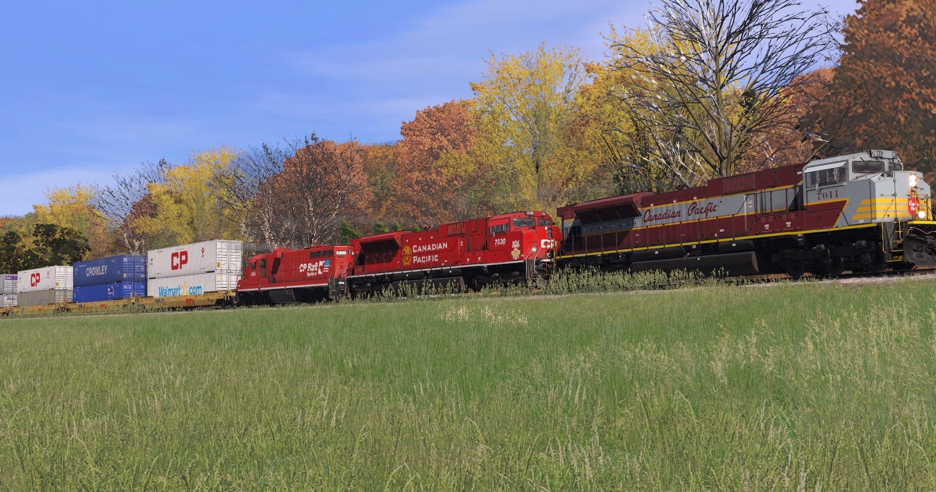 Tags: Trainz Railroad Simulator 2022, Stratton Falls Line, Default, CP SD70ACU Heritage (script), CP SD70ACU, CP SD10, AP53 DTTX Wellcar B [c]
