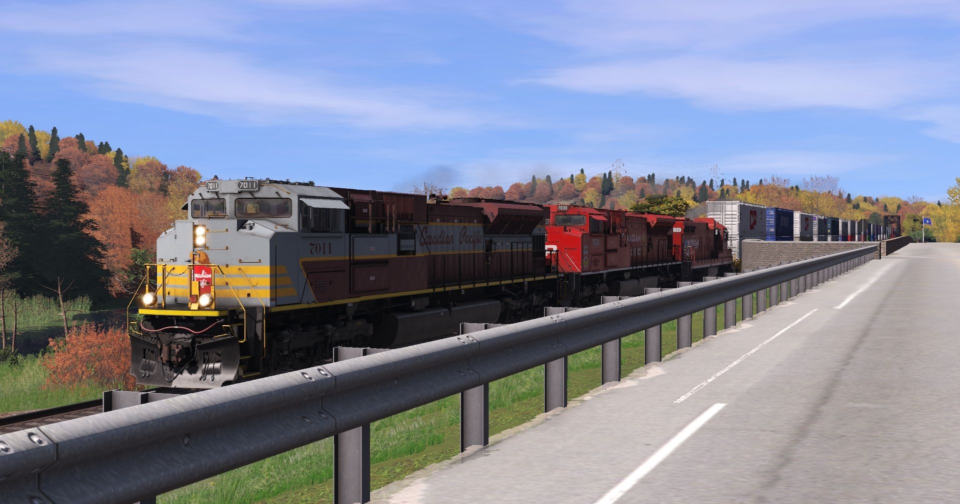 Tags: Trainz Railroad Simulator 2022, Stratton Falls Line, Default, CP SD70ACU Heritage (script), CP SD70ACU, CP SD10, NREX ex-ATSF SD45-2u, SD45-2 FVLC #2024, SD45(SD40M-2) CP #5498, ACRX 60ft HC Boxcar, AP53 DTTX Wellcar B [c]