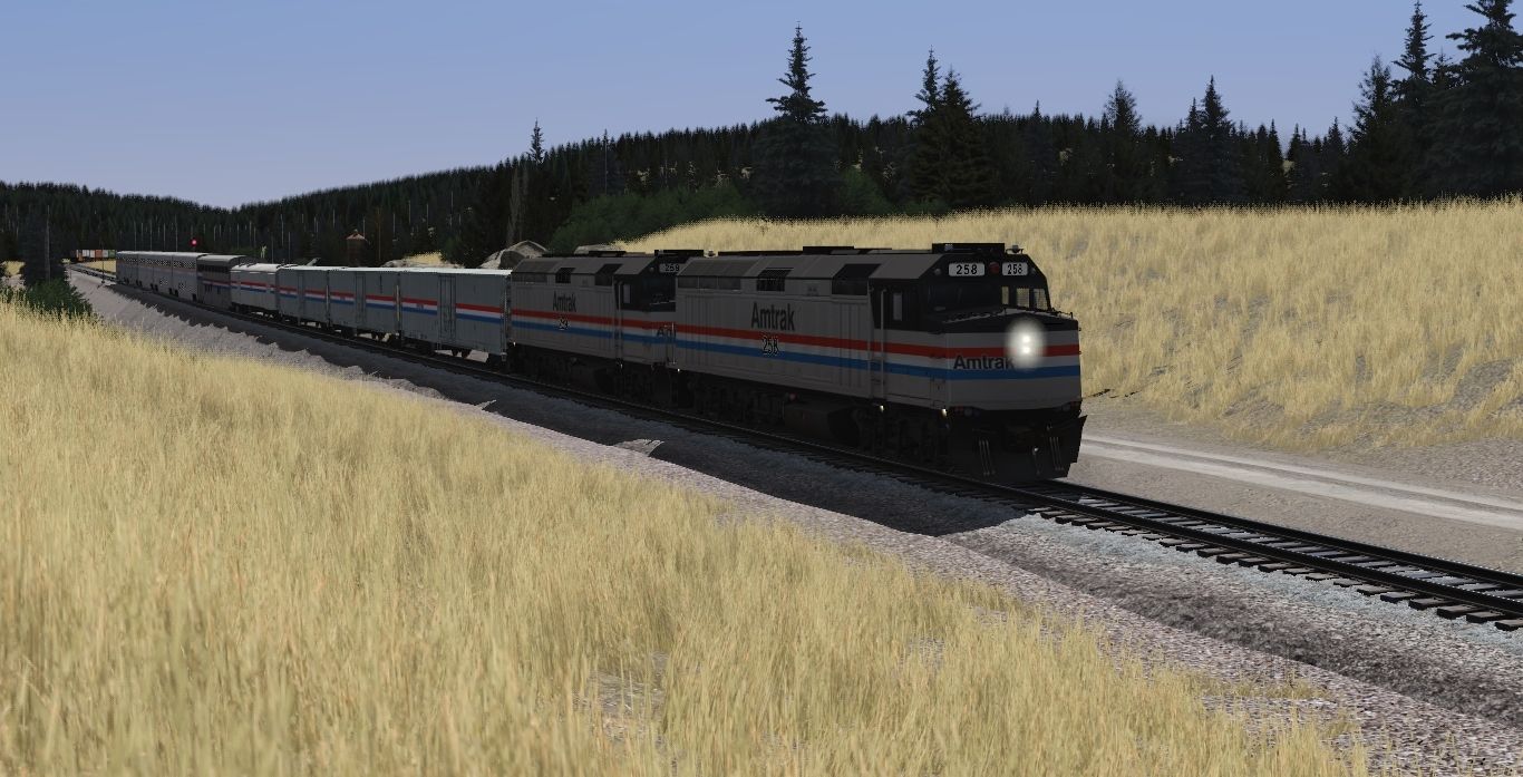 Tags: Trainz Railroad Simulator 2022, BN Oasis V3, BN Scenes - Early June 1993, AMTK F40PH ph3 (early), Amtrak HEP MHC (Mail), Amtrak HEP MHC, Amtrak HEP Baggage 1178-1195, AMTK Hi-Level Transition Car Ph III (Superliner), Amtrak III Sleeper Superliner, Amtrak III Diner Superliner, Amtrak III Coach Superliner, APLX 89ft AP TOFC Flatcar, TTX 89ft ACF AP TOFC Flatcar ASH10A (Brown), SOU 89ft AP TOFC Flatcar (Late) FS-27