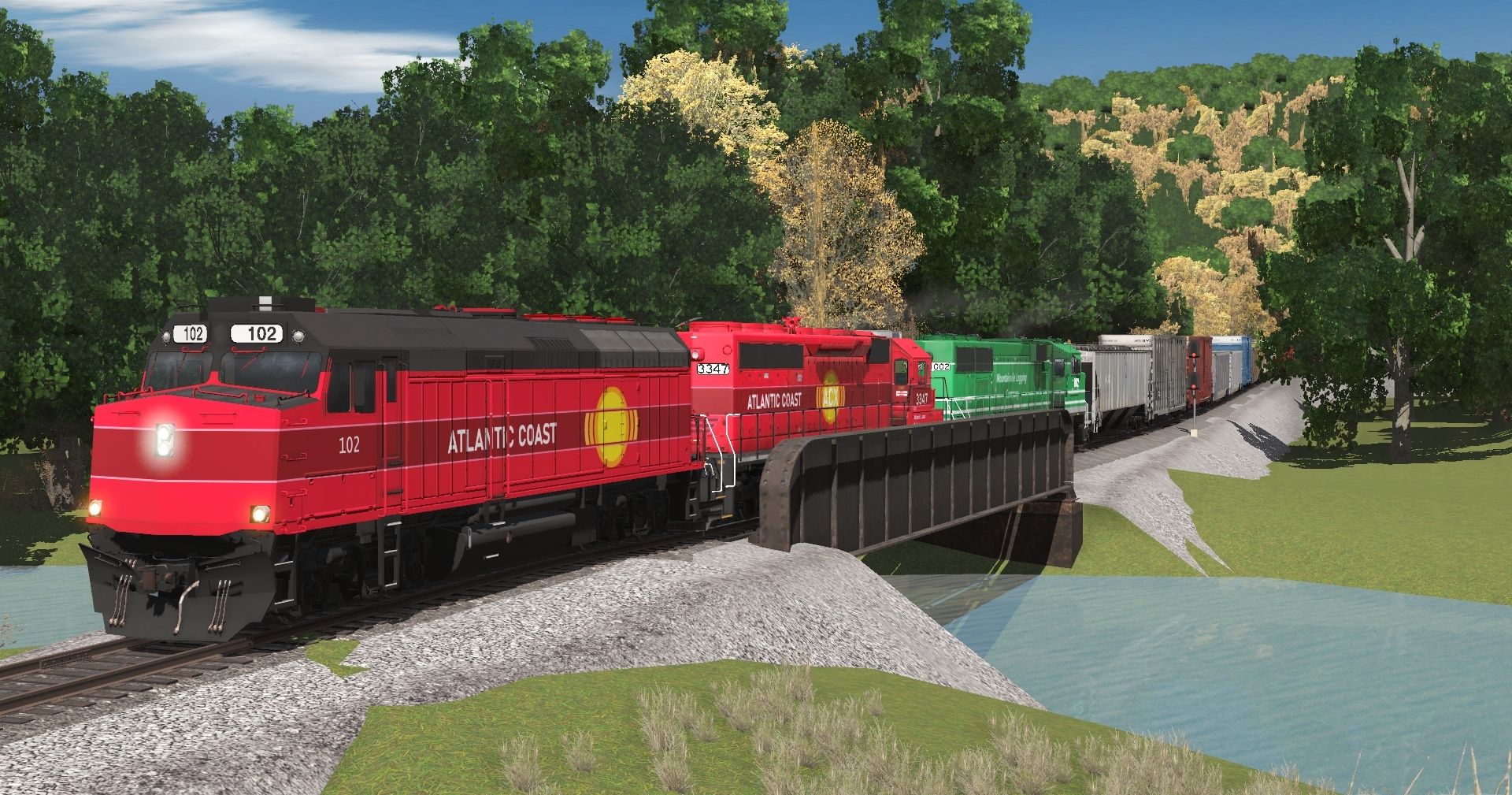 Tags: Trainz Railroad Simulator 2022, REAA, Default, ACRX F40PH 102, ATCR SD40-2, MVLX Ex-NS SD60E 1001-1010 green, Flying Cam PBR, JTSX Trinity 3 Bay Hopper #487530, JR 50ft Boxcar JKTX #2, JR 50ft Boxcar HB, JR G Bethgon NS, JR G Bethgon TILX, JR B 50ft Boxcar NS SRY2, JR BNSF Bethgon