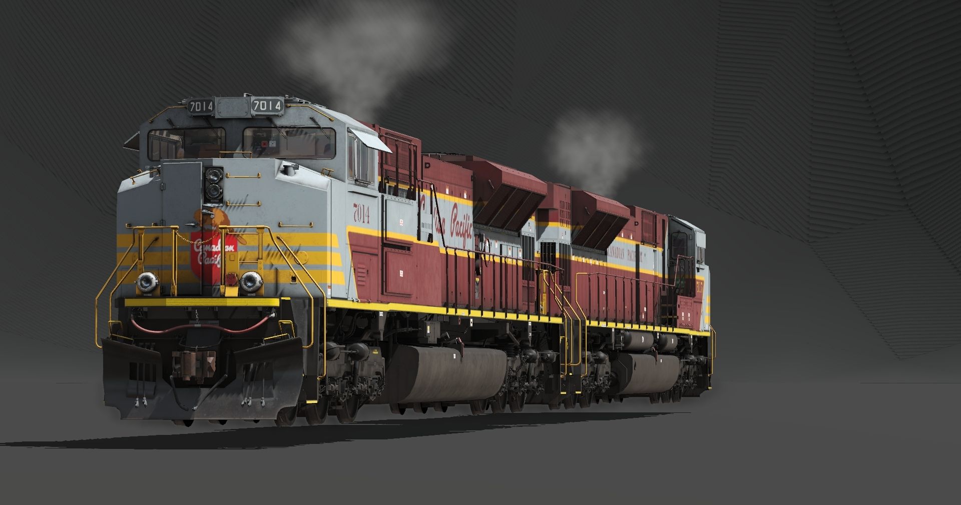 Tags: Trainz Railroad Simulator 2022, Display locos, Default, Flying Cam PBR, CP SD70ACU Heritage (script), CP SD70ACU Heritage (block)