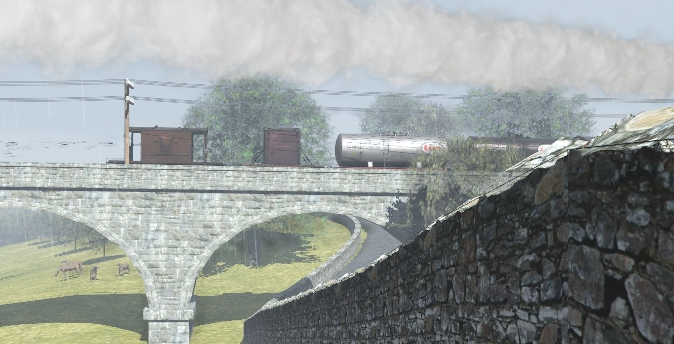 Tags: Trainz Railroad Simulator 2022, Hawes Junction, Vintage Scenes - Late August 1962, BR 4mt Tank [BR Black], BR 20T Brakevan (diag. 1/506), BR 13T Conflat A, Esso 22T Class A Tanker, Esso 22T Class B Tanker, BR 12T Standard Van Weathered, BR 12T Standard Van Weathered (Plywood), BR 12T Standard Van (Ply Doors), BR 24.5T CoalHop Diag 148 HUO
