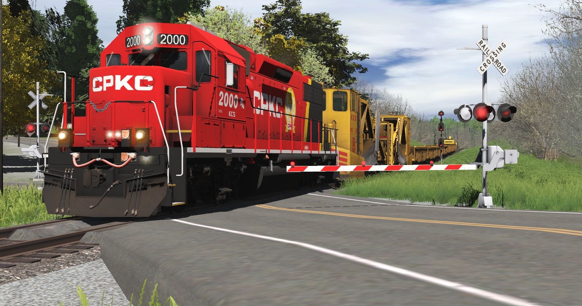 Tags: Trainz Railroad Simulator 2022, more crossing, Default, KCS GP38-2 2000, KCS MOW Jordan Spreader J #905 Early, KCS MOW Jordan Spreader J #905 Late, KCS MOW Gondola G, KCS MOW Gondola E, KCS MOW Gondola D, KCS MOW Gondola C