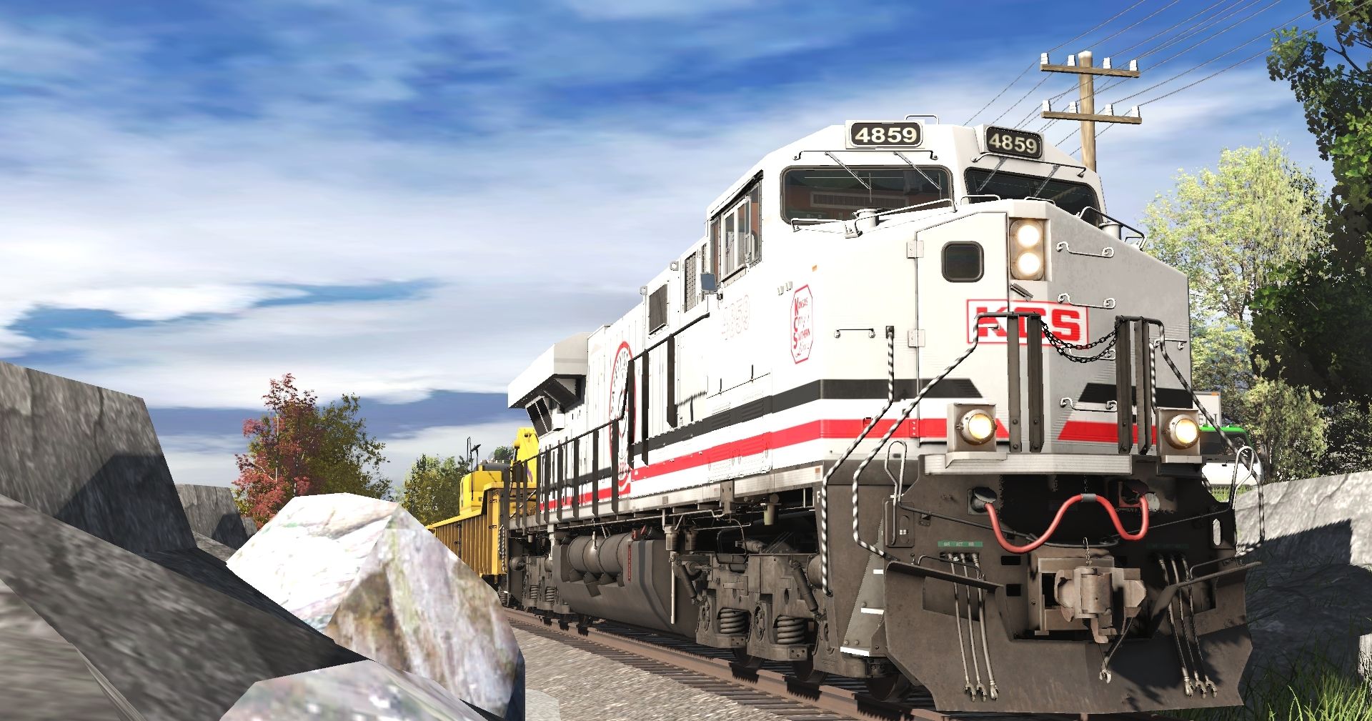 Tags: Trainz Railroad Simulator 2022, more crossing, Default, KCS ES44AC Safety Starts Here, KCS MOW Jordan Spreader J #905 Late, KCS MOW Jordan Spreader J #905 Early, KCS GP38-2 2000, KCS MOW Gondola C, KCS MOW Gondola D, KCS MOW Gondola E, KCS MOW Gondola G