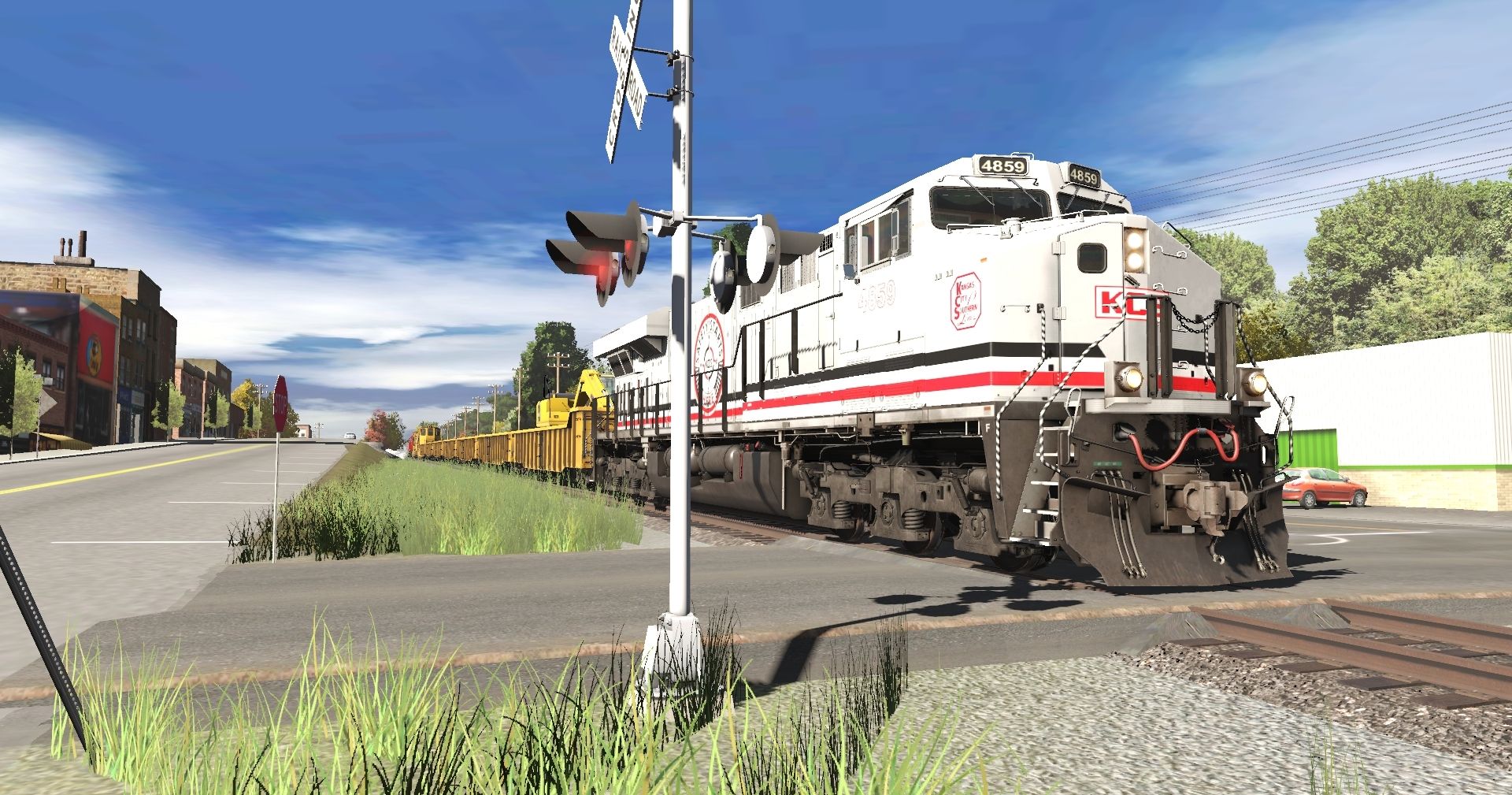 Tags: Trainz Railroad Simulator 2022, more crossing, Default, KCS ES44AC Safety Starts Here, KCS MOW Jordan Spreader J #905 Late, KCS MOW Jordan Spreader J #905 Early, KCS GP38-2 2000, KCS MOW Gondola C, KCS MOW Gondola D, KCS MOW Gondola E, KCS MOW Gondola G