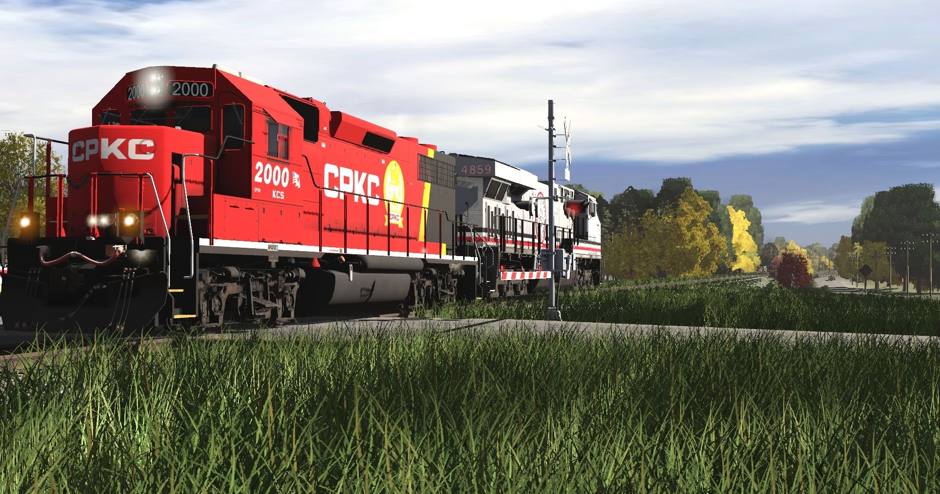 Posted by: jyar8882001 | Posted:2024-12-08 23:42:44 Caption: Tags: Trainz Railroad Simulator 2022, more crossing, Default, KCS GP38-2 2000, KCS ES44AC Safety Starts Here
