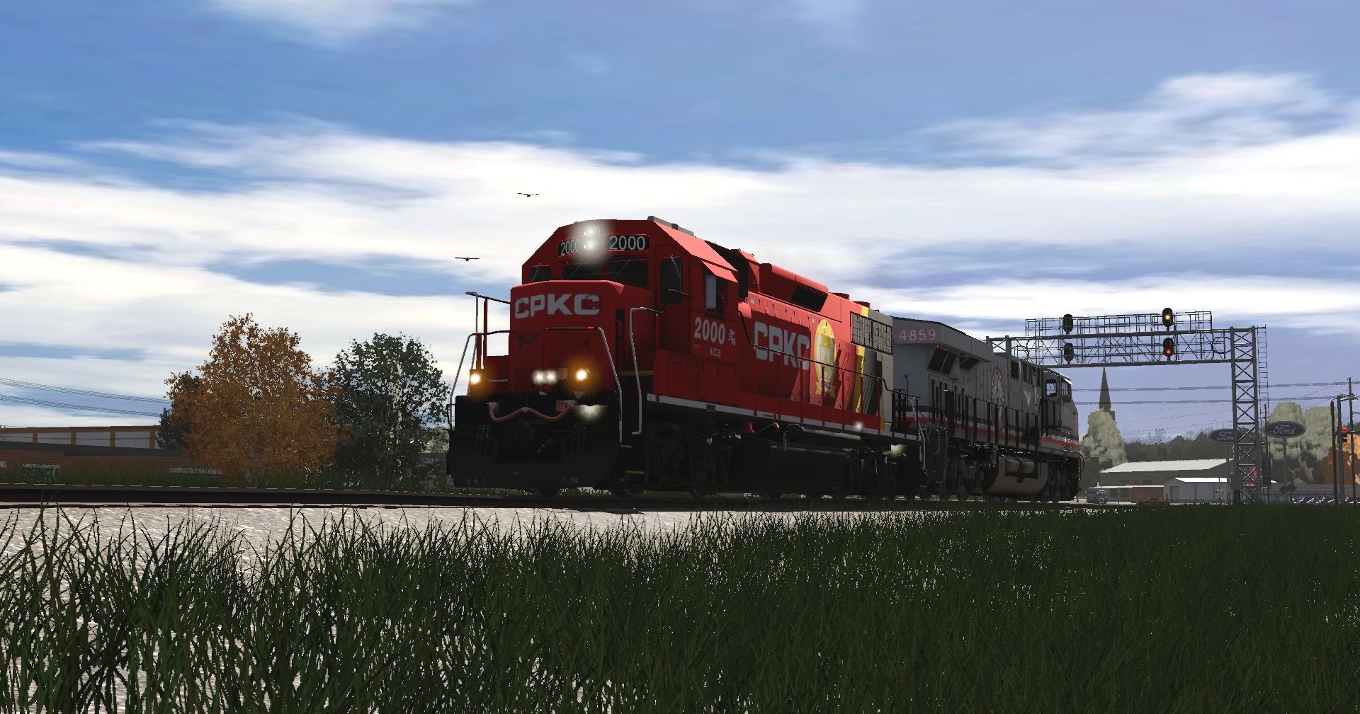 Tags: Trainz Railroad Simulator 2022, more crossing, Default, KCS GP38-2 2000, KCS ES44AC Safety Starts Here, MOCX Trinity 3 Bay Hopper 2