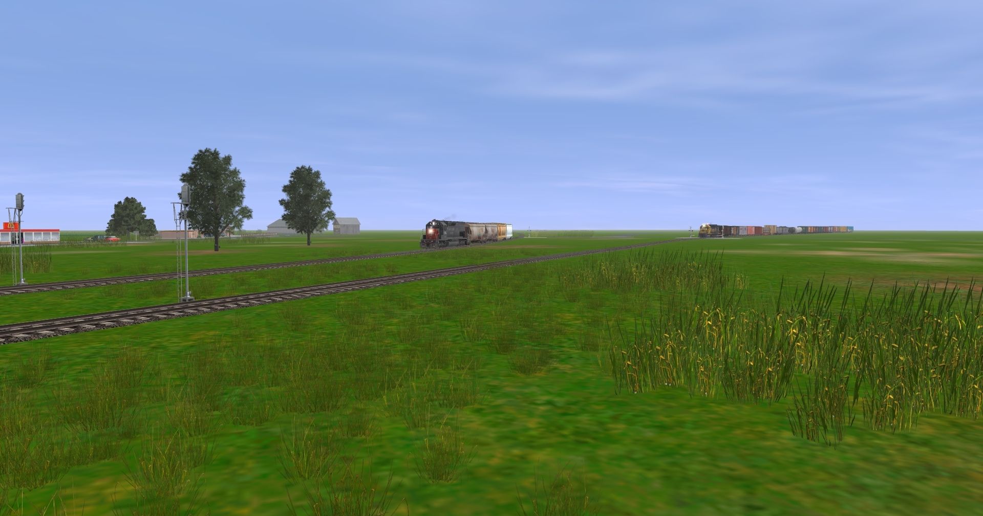 Tags: Trainz: A New Era, Hamm - Burg, Extra, SP SD40T-2, ATSF SD45, Custom ACF 3 Bay - Winchester & Western, Custom ACF 3 Bay - W Farms LLC, 50ft ACF Hopper ACFX 49971, 50ft ACF Hopper ACFX 55724, 40ft Boxcar C&O, 40ft Boxcar NH 01, 40ft Boxcar SAL 01, 40ft Boxcar WM 01, 40ft Boxcar UP 01