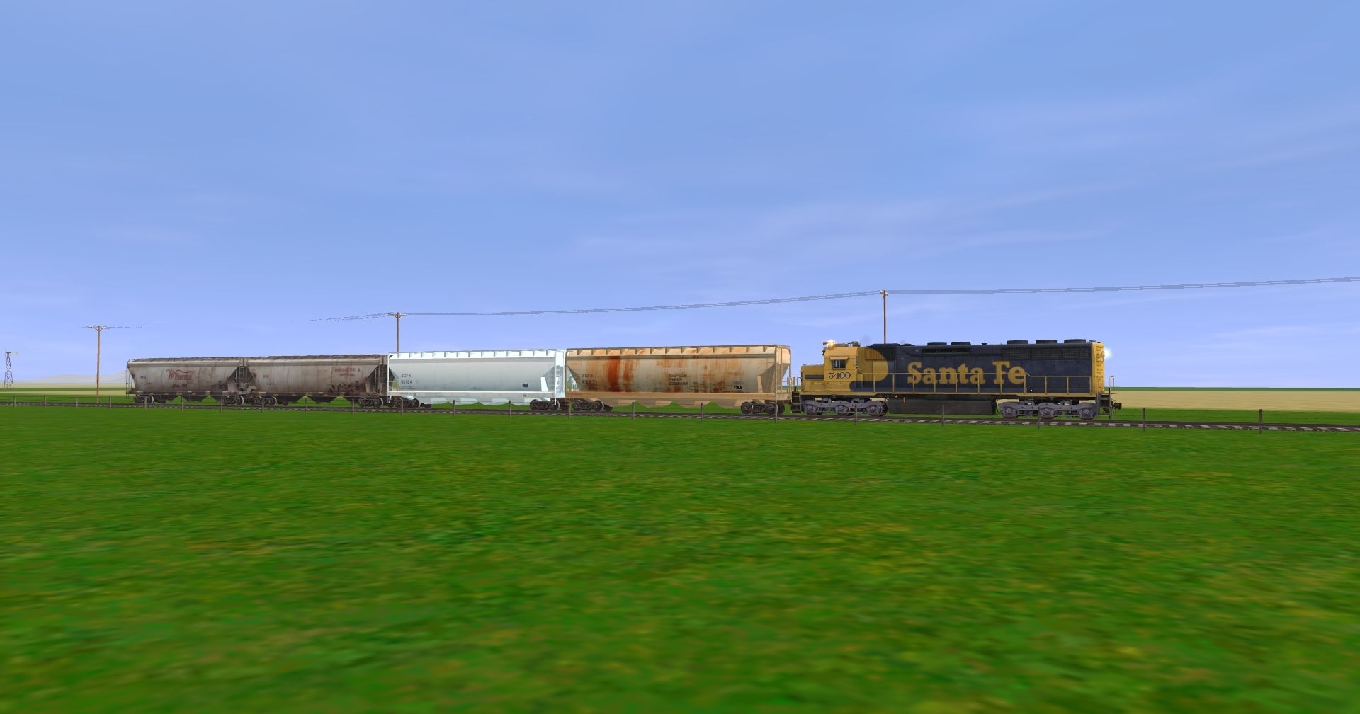 Tags: Trainz: A New Era, Hamm - Burg, Enlarged, ATSF SD45, 50ft ACF Hopper ACFX 49971, 50ft ACF Hopper ACFX 55724, Custom ACF 3 Bay - Winchester & Western, Custom ACF 3 Bay - W Farms LLC