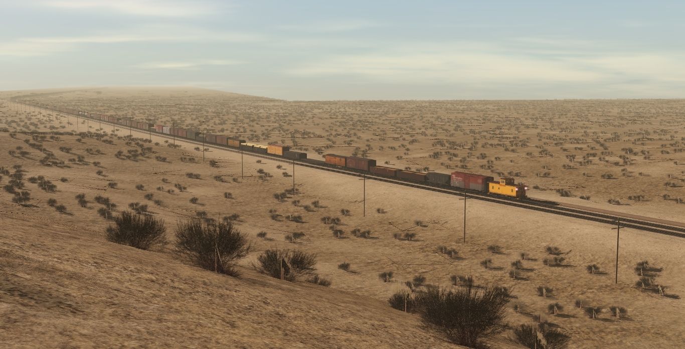 Tags: Trainz Railroad Simulator 2022, LASL Colinas Basin (1950's), Vintage Scenes - Mid June 1955, UP JMB Challenger Clean, up e9b, up e9a, UP CA-3 Caboose Yellow Early, 40ft Wood Reefer URTX 3, 41FT Gondola Erie, 41FT Gondola B&M 2, 40ft Boxcar SLSF, USRA C Gondola B&M, 40ft Boxcar DL&W Late Weathered, 40ft Boxcar OSL