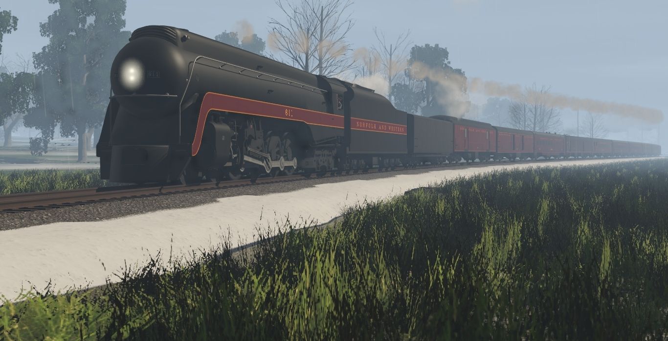 Tags: Trainz Railroad Simulator 2022, Generic Eastern Route - TRS 19, NS Steam Scenes - December 3 1994, N&W J Class Engine, N&W J Class Tender, C&O 614 Aux Tender Undecorated, N&W Tool Car #1407, N&W Tool Car #9647, N&W Powhatan Arrow 06 D1 Diner 494, JRPX Tool Car, WMSR Coach 726 Man O War, N&W NS Powhatan Arrow 01 P1 Locker Car 502, N&W NS Powhatan Arrow 02 P2 Divided Coach 511, N&W NS Powhatan Arrow 03 P3 Standard Coach 535
