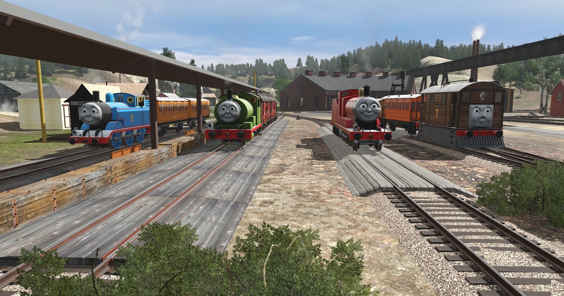 Tags: Trainz Railroad Simulator 2019, Devil's Gulch & Helengon TS19, TTTE - James the red engine, SudrianRails - Percy the Small Engine, HE - Thomas The Tank Engine, TTTE - Toby The Tram Engine [TRS19], TTTE - James's Tender, TTTE - Henrietta, TTTE - Annie [TRS19], Zuri - TVS elsie (PBR), TTTE - Clarabel [TRS19], TTTE - CCT Van, TTTE - S2 25T Brake Van