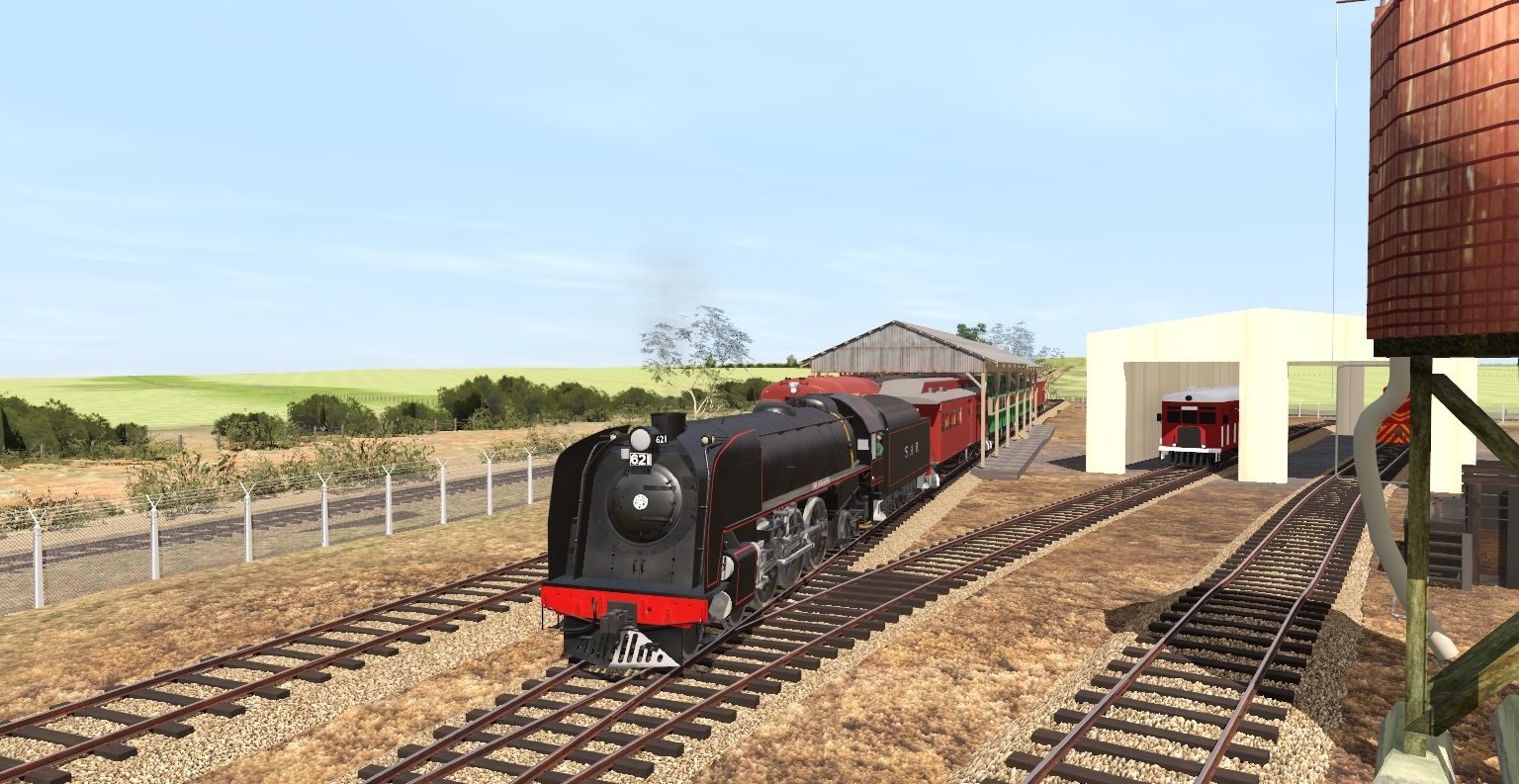 Tags: Trainz Railroad Simulator 2019, 2024, highlander, SAR 621 SG 2020+ Locomotive, SA-STA Red Hen, SAR - 75 class Brill - TS12 SP1, SAR 500 - TS12 SP1, SAR 300 Redhen Single Cab #351, SAR 621 SG 2020+ Tender, SAR centenary car - #1, SAR End Loader Baggage Car - Suburban Red, Invisible Train