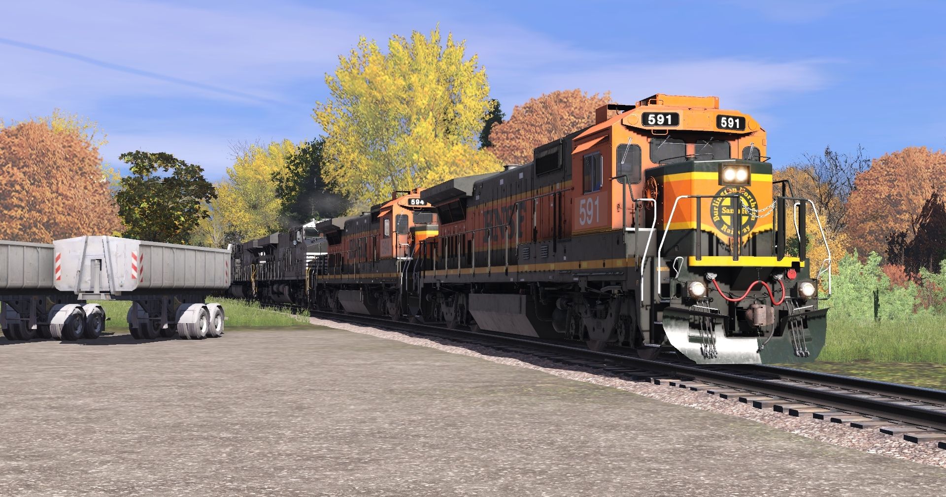 Tags: Trainz Railroad Simulator 2022, Stratton Falls Line, Stratton Falls Line - Default, BNSF B40-8 H1 (late), NS ES44AC, CN ET44AC, NREX ex-ATSF SD45-2u, SD45-2 FVLC #2024, SD45(SD40M-2) CP #5498, SFRX H1K Hopper, SFRX yellow H1K Hopper, EOT, ACRX 60ft HC Boxcar