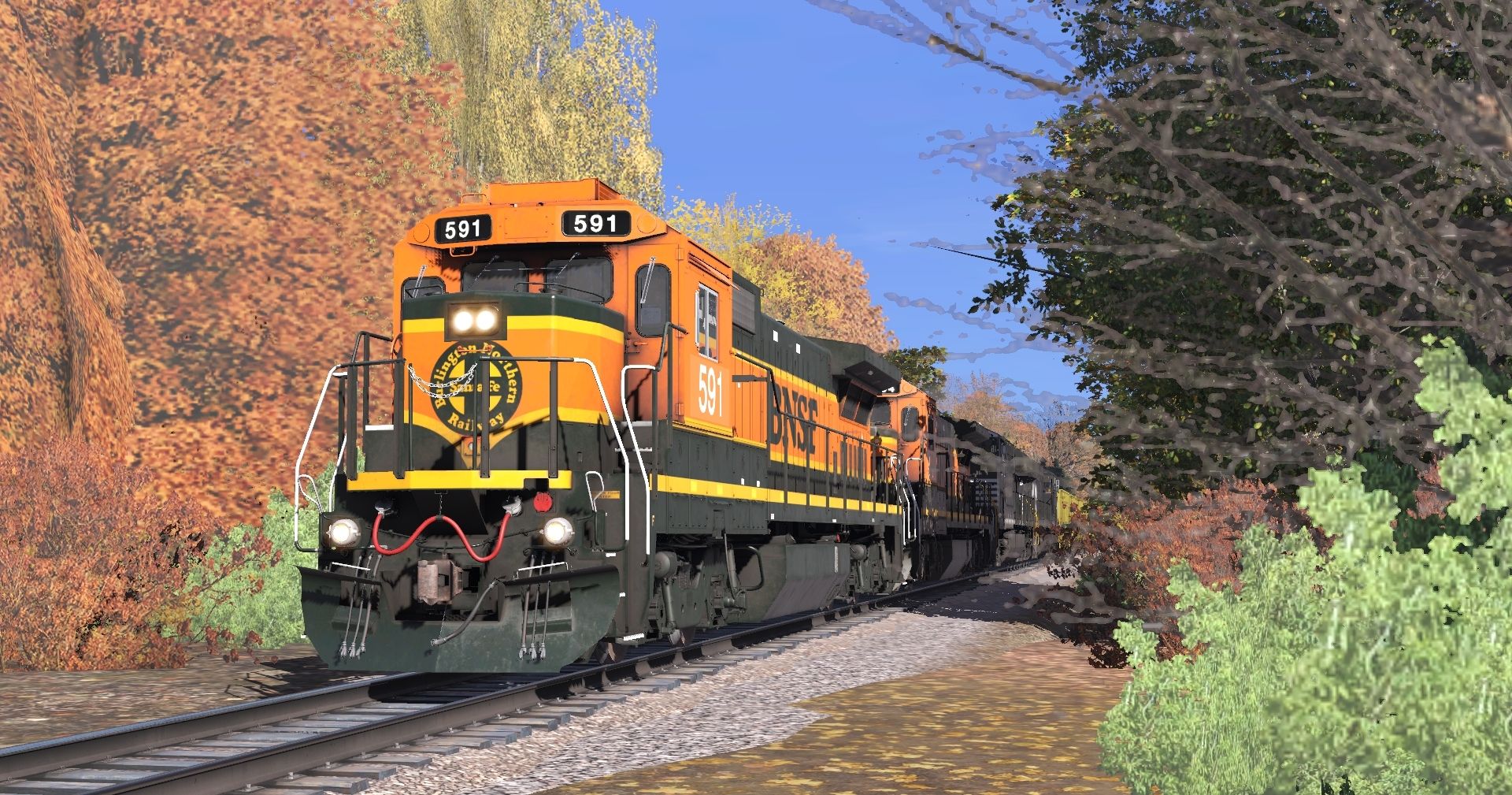 Tags: Trainz Railroad Simulator 2022, Stratton Falls Line, Stratton Falls Line - Default, BNSF B40-8 H1 (late), NS ES44AC, SD45-2 FVLC #2024, NREX ex-ATSF SD45-2u, SD45(SD40M-2) CP #5498, CN ET44AC, SFRX H1K Hopper, SFRX yellow H1K Hopper, EOT, ACRX 60ft HC Boxcar
