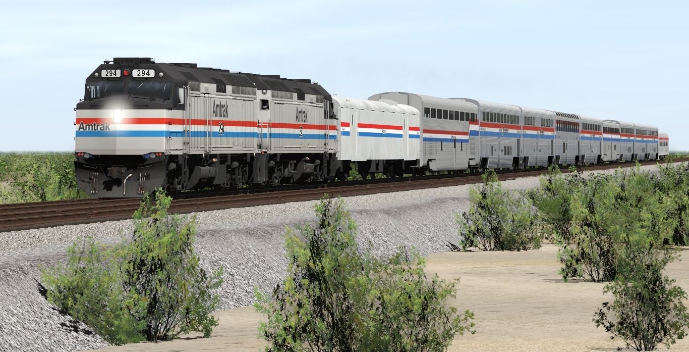 Tags: Trainz Railroad Simulator 2022, Generic Desert Route, SP Scenes - Late August 1988, A_Camera_00, AMTK F40PH ph3 (early), Amtrak HEP Baggage 1178-1195, AMTK Hi-Level Transition Car Ph III (Superliner), Amtrak III Sleeper Superliner, Amtrak III Diner Superliner, Amtrak III Lounge Cafe Superliner, Amtrak III Coach Baggage Superliner, AMTK Hi-Level Chair Car Ph III (Superliner), Amtrak III Coach Superliner, SP Budd 10-6 Sleeper
