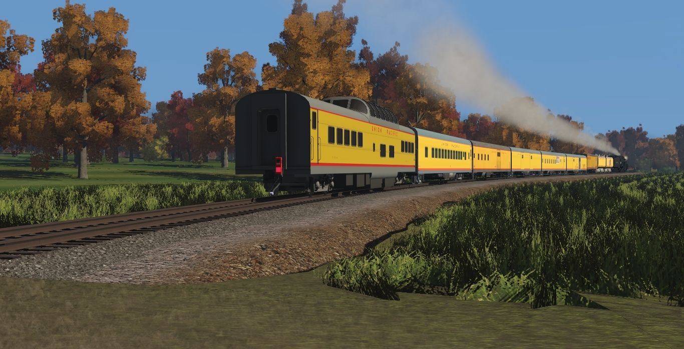 Tags: Trainz Railroad Simulator 2022, Generic Eastern Route - TRS 19, UP Steam Scenes - Early October 2010, UP JMB Challenger Oil Clean, FRED UP, UP Lightweight ACF Dome Coach, UP coach 5450, up Lightweight 1947 COSF Baggage Dorm Rebuilt 1942 Baggage, up baggage 5772, up baggage dormitory 6002, up baggage 5772, UP Heritage Fleet Stair Car/Box car, UP Auxiliary Tender 814 (Joe Jordan) SR, UP Auxiliary Tender 809 (Jim Adams) SR