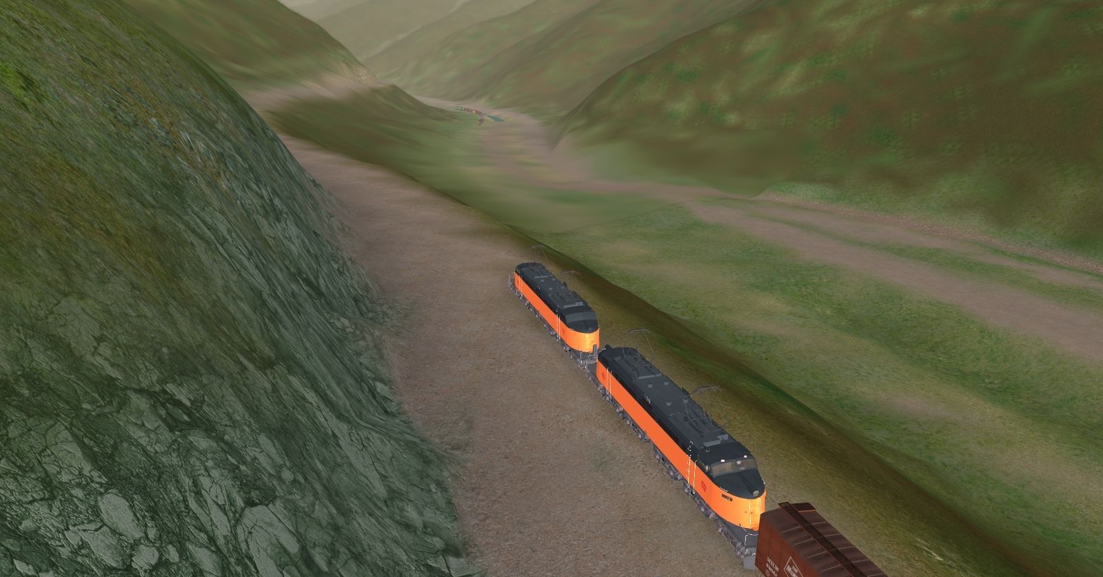 Tags: Trainz: A New Era, Milwaukee Road Avery-Drexel, MILW - Transcontinental Westbound Freight Train (summer time), TUME-71001753-MILW-EF4, TUME-71402175-SD40-2-BN, TUME-300502-Boxcar-50ft-MILW, TUME-300501-Boxcar-50ft-MILW, TUME-300596-Logging-Flatcar-UP, TUME-300599-Logging-Flatcar-UP, TUME-300514-Boxcar-50ft-CN, TUME-300513-Boxcar-50ft-CN, TUME-300510-Boxcar-50ft-UP, TUME-300512-Boxcar-50ft-GN, TUME-300511-Boxcar-50ft-GN