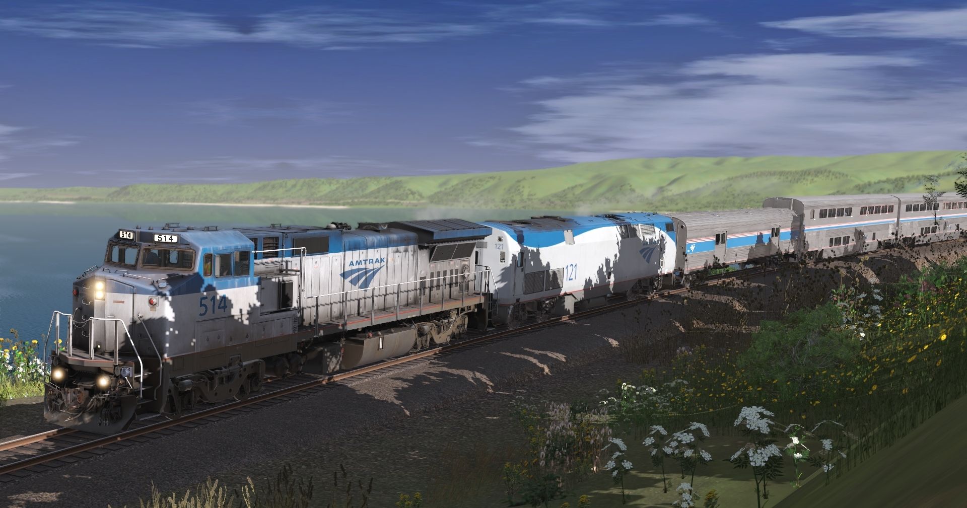 Tags: Trainz Railroad Simulator 2022, Hawaii Railway Official Release, Default, Amtrak B32-8WH Phase V 500-519 3, AMTK P42DC ph V, Amtrak Heritage Baggage, Amtrak Superliner II Transition Sleeper, Amtrak Superliner II Diner, Amtrak Superliner II Coach, Amtrak Superliner II Lounge, Amtrak Superliner I Coach Baggage, Amtrak Superliner II Sleeper