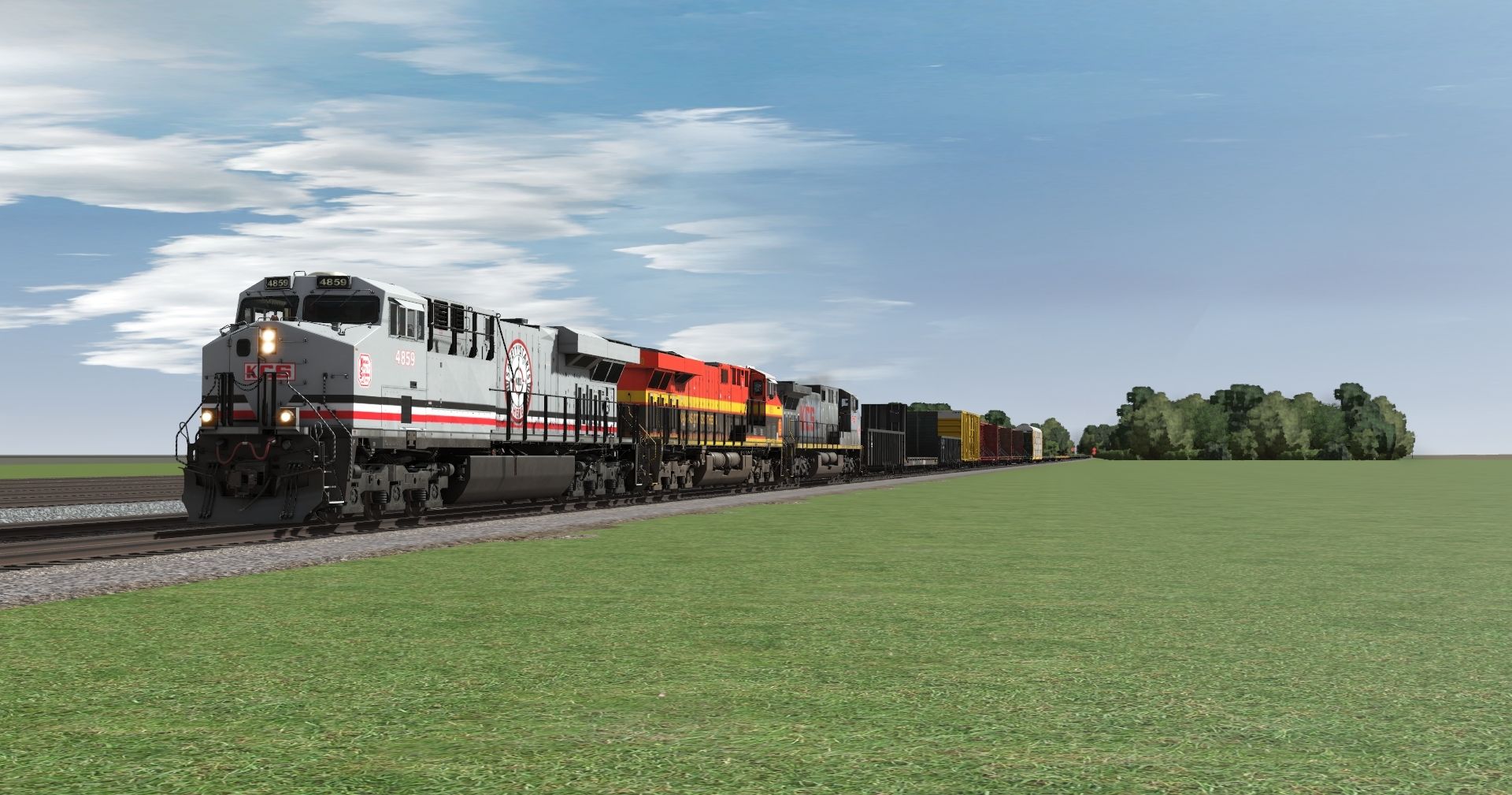 Tags: Trainz Railroad Simulator 2022, My nice time, Default, KCS ES44AC Safety Starts Here, KCS ES44AC, KCSM AC4400CW 4550-4574 TS19 1, JOBX 52ft Gondola, JR F NS 3 62Ft. Bulkhead, JR G 52ft Gondola NS New Logo, 60ft HC Boxcar UP V2, 73ft Centerbeam AOK 2, 73ft Centerbeam TR 3, 73ft Centerbeam TR 4, 73ft Centerbeam WRWK 2