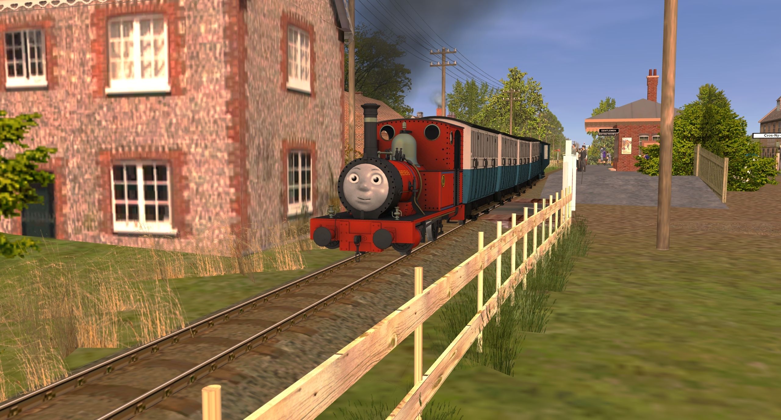 Tags: Trainz: A New Era, Skarloey Railway V3, Skarloey Railway V3 - Default, SKR #2 - Rheneas, SKR 4-Wheeled Coach w/Faces, SKR Goods Brakevan w/guard