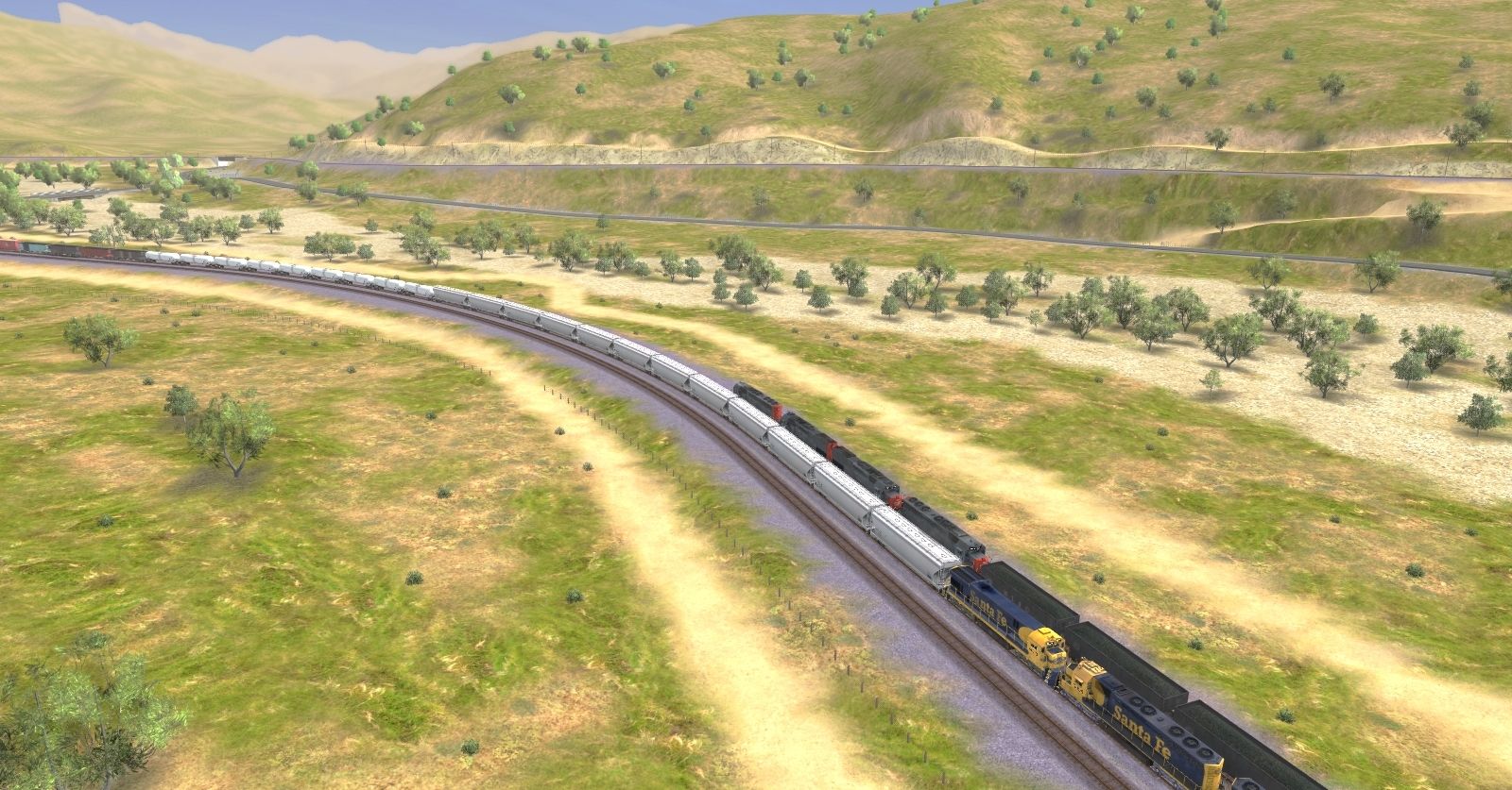 Tags: Trainz: A New Era, Mojave Sub Division, The DPU Push, ATSF SD45, ATSF C30-7, SP SD40T-2, SP SD45, IPL 4 Bay Hopper 1, Chessie (B&O) 4 Bay Hopper, JRPX ACF Centerflow 4 Bay round hatch, 100-ton 4-bay Hopper WL&G, JRPX 20800 gal tank car, BPRR 4 Bay Hopper 1, BPRR 4 Bay Hopper 3