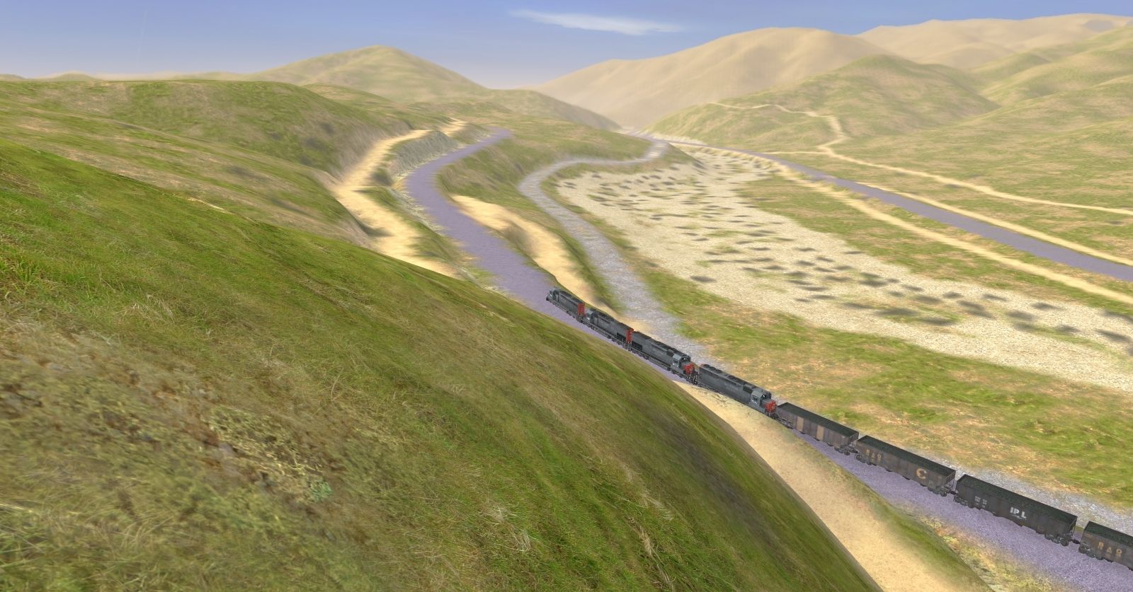 Tags: Trainz: A New Era, Mojave Sub Division, The DPU Push, SP SD40T-2, SP SD45, BPRR 4 Bay Hopper 3, IPL 4 Bay Hopper 1, Chessie (B&O) 4 Bay Hopper, BPRR 4 Bay Hopper 1